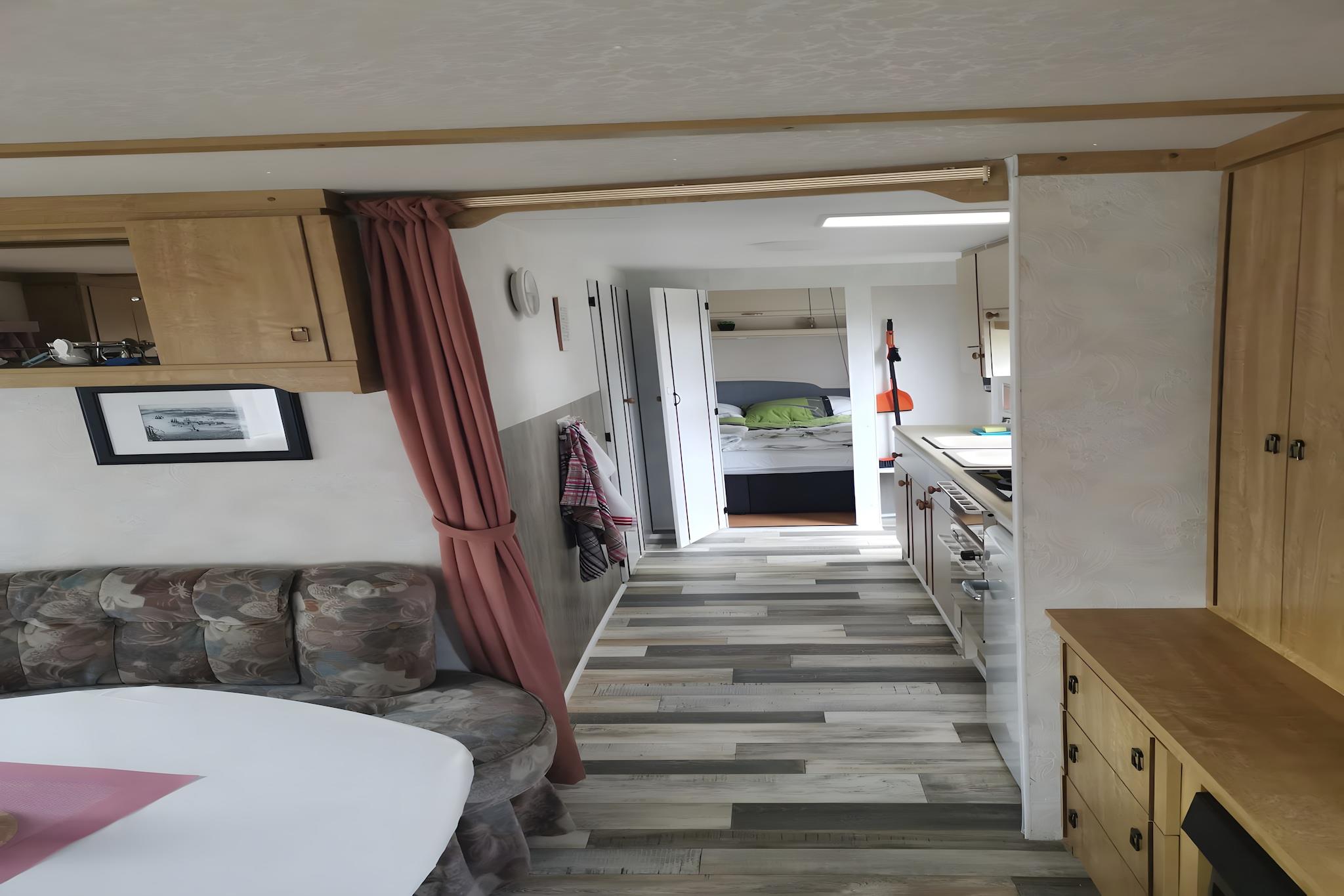 Beliggende kun 50 meter fra Goldbergs sø og badestrand tilbyder denne hyggelige lejlighed i stueetagen et afslappende oase for par eller familier. Layoutet inkluderer en indbydende stue med satellit-tv, et rummeligt køkken med gaskomfur, kaffemaskine og spiseplads, plus to komfortable soveværelser - et med en dobbeltseng og et andet med to enkeltsenge. Et veludstyret badeværelse har bruser, toilet og hårtørrer samt en børneseng til de yngre gæster. Udendørs danner den møblerede terrasse og private have scenen for grillaftener, legetid eller stille morgener med kaffe. Vaskefaciliteter mod betaling, parkering på stedet og praktiske faciliteter såsom supermarkeder (Aldi 1 km, REWE 2 km), et bageri og restauranter kun 50-1000 meter væk gør længere ophold behageligt og bekvemt. Med fiskepladser, vandsport og spisning ved søen kun få skridt fra din dør, er det den perfekte base for en afslappet naturflugt i Mecklenburg Vorpommern.