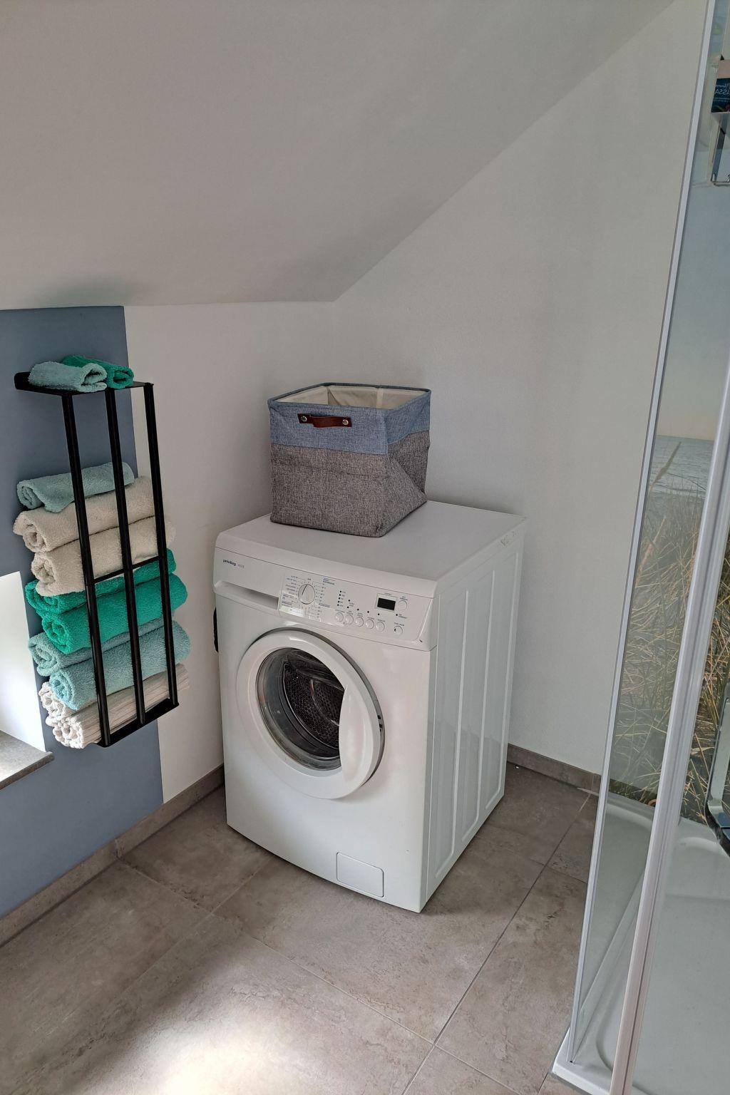 Inside, you will find modern furnishings that leave nothing to be desired: A large king-size bed garnished with a high-quality mattress topper and an additional bed offer space for up to three people. If required, we can provide a cot and high chair on request. The fully equipped Nolte kitchen, including the latest electrical appliances and a wide range of kitchen utensils, invites you to cook together. The cosy living room with sofa bed, large dining table and entertainment electronics completes the offer. Fast Wi-Fi and a neat bathroom with shower and washing machine, including all the necessary toiletries, go without saying.