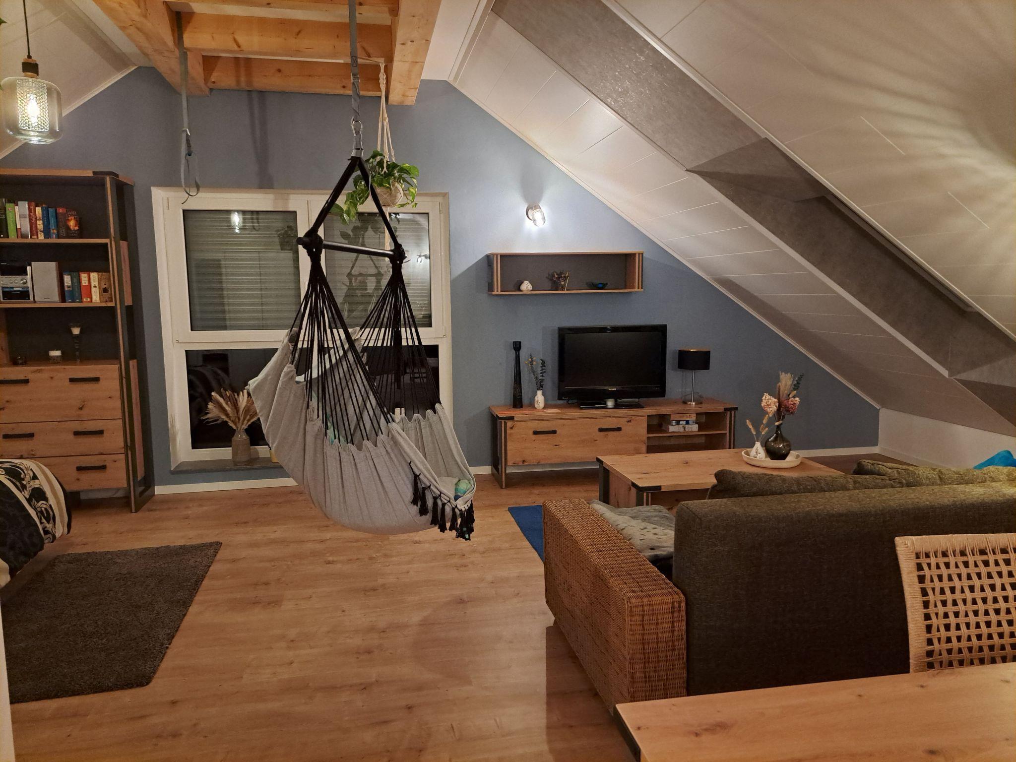 Discover your dream destination for your next holiday: our 61 m² attic flat in an environmentally friendly efficiency house, built in 2020, promises a time-out in an idyllic location. Nemmersdorf, a tranquil village not far from the church, provides the perfect setting for rest and relaxation. Completed with great attention to detail, we have been welcoming guests to this oasis of well-being since mid-September 2023.