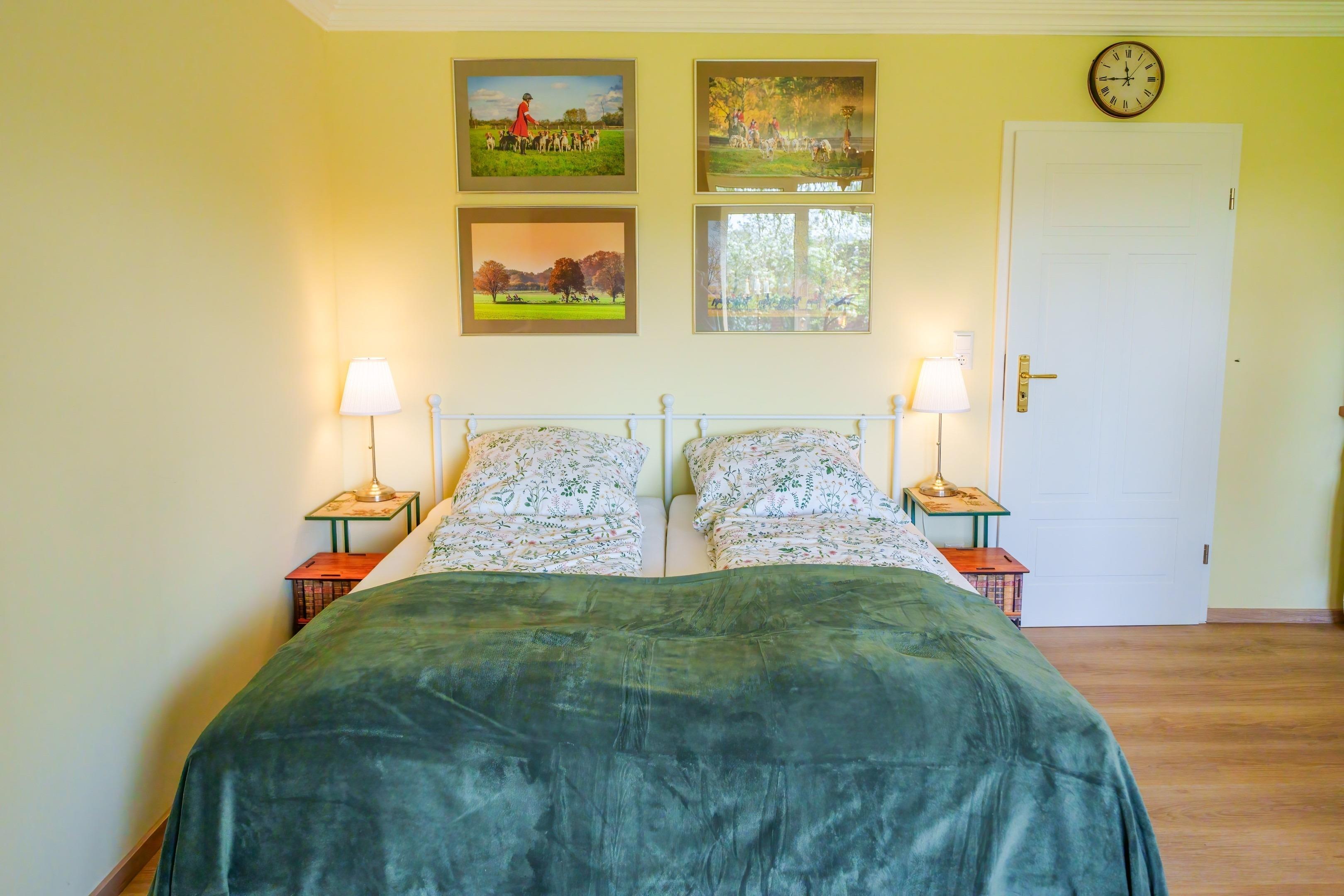 Aus dem Wohnzimmer blicken Sie ganz entspannt ins Grüne. Mit viel Liebe zum Detail wurde hier auf 35 qm ein Urlaubsparadies für Pärchen, Wanderer, Reiter, Jäger und Naturbegeisterte geschaffen.