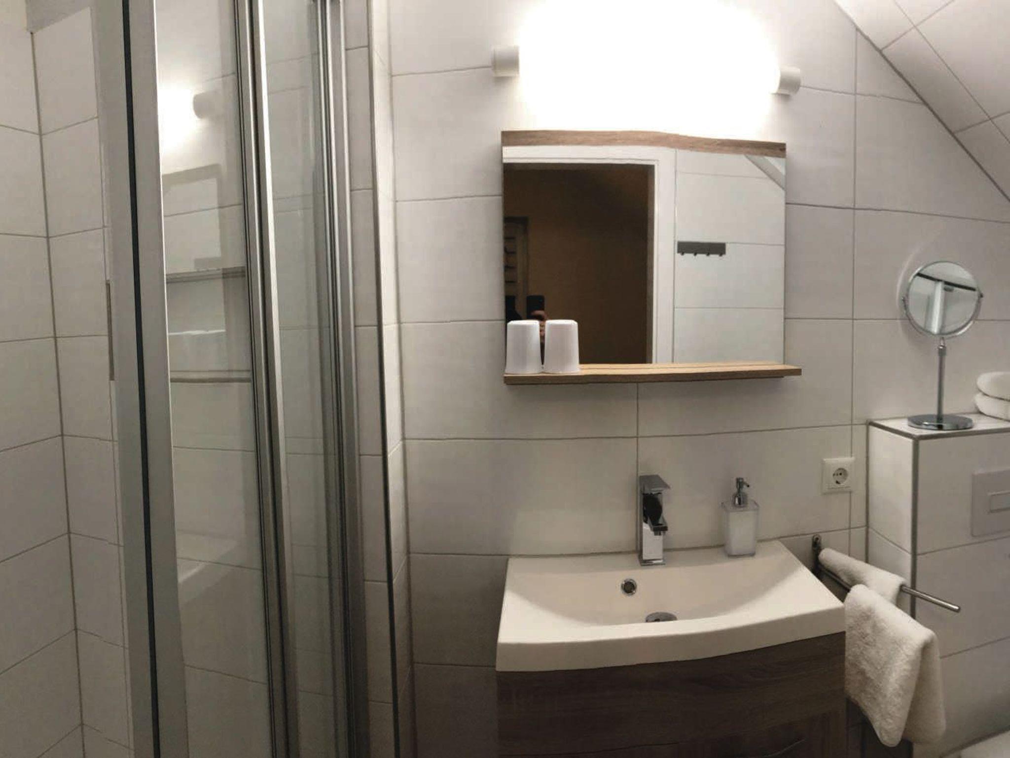 Unsere Ferienwohnung 1 ist perfekt für Ihren Aufenthalt mit 2 Personen. Sie finden ein Schlafzimmer mit angeschlossenem Bad mit Fenster, Dusche und WC, Küche mit Esstisch, Wohnzimmer und Abstell-/Abtropfraum, für den Fall dass Sie Nasse Kleidung aufhängen möchten. Das Wohnzimmer ist ausgestattet mit einer gemütlichen Couch. Ein 40 Flachbildfernseher im Wohnzimmer ist für uns eine Selbstverständlichkeit. Wir empfehlen eine Maximalbelegung von 2 Personen, da es keine Aufbettungsmöglichkeiten gibt.