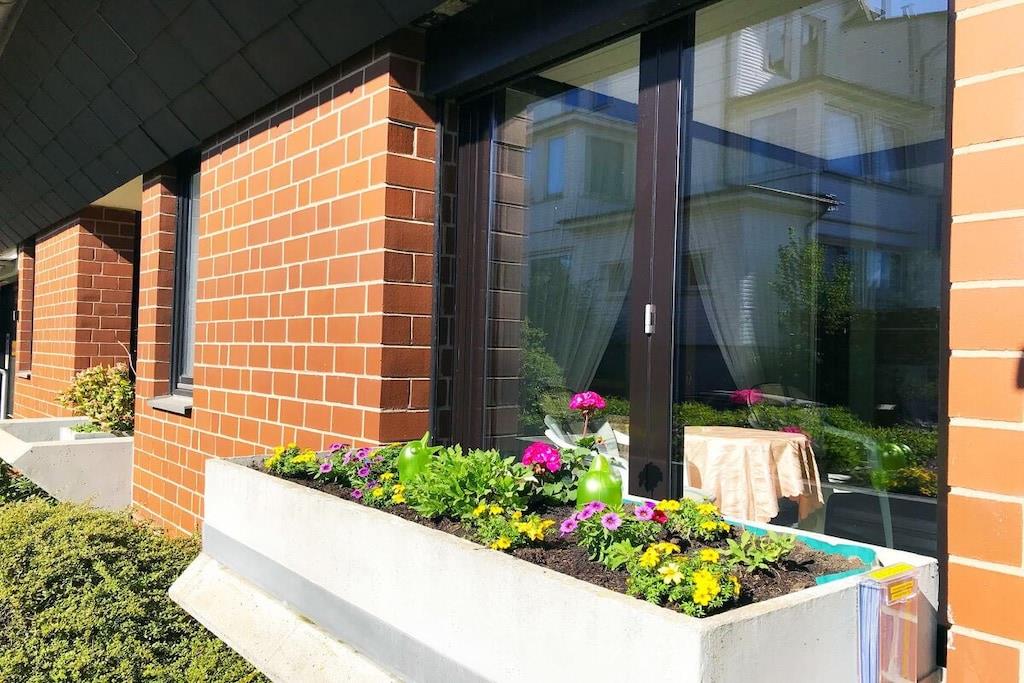Die Fewo ist ca. 35 m² groß, liegt im Erdgeschoss und teilt sich in ein großes gemütliches Wohnzimmer mit offener Wohneinbauküche sowie Essbereich und Zugang zur großen Sonnenloggia / Wintergarten, ein komfortables Schlafzimmer mit Komfort-Doppelbett, ein Duschbad mit WC! Im Wohnzimmer befindet sich eine gemütliche Couchgarnitur mit Flachbild-TV. Die Ferienwohnung ist mit hellem & hochwertigem Vinyl-Fußboden in Holzoptik ausgelegt. Hervorragend geeignet für unsere Gäste mit vierbeinigen Familienmitgliedern! Die Ferienwohnung ist eine reine Nichtraucherferienwohnung! Das Rauchen ist auch auf der Sonnenloggia/Wintergarten nicht gestattet!
