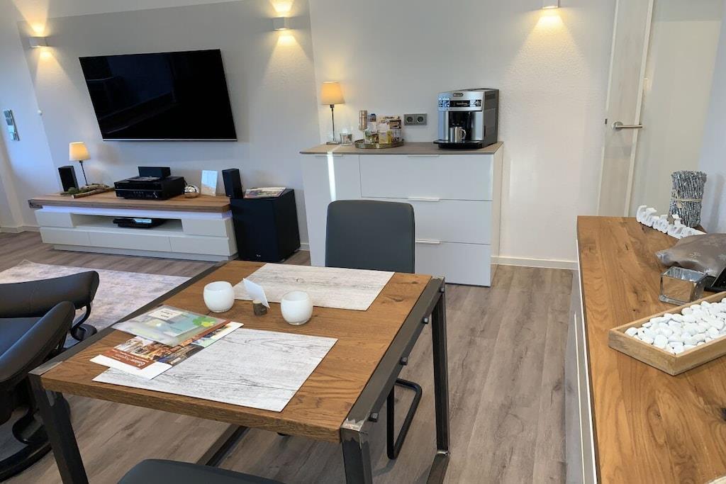 Mellemetage: (pulterkammer(tørretumbler, vaskemaskine, tørreskab)) På 1. etage: (entre(), Køkken(, , , tekøkken, spisebord, kogeplade, elkedel, brødrister, kaffemaskine, ovn, mikrobølgeovn, opvaskemaskine , køleskab, fryser), stue / spisestue(, , , , bibliotek, Fjernsyn, spisebord, pejs, DVD-afspiller, Blu-ray afspiller, radio, CD-afspiller, stereoanlæg, havemøbler, barnestol, baldakin), soveværelse(, , , king size-seng, Fjernsyn, radio), badeværelse(, , toilet, badekar, bruser, håndvask, føntørrer), pulterkammer(, strygebræt, strygejern)) , , , , , garage, Internetadgang, Internetadgang, Førstehjælp, tørretumbler, vaskemaskine, balkon(, balkon, baldakin), balkon(, balkon, baldakin), varme, parkering, strygebræt, strygejern, tørreskab, telefon