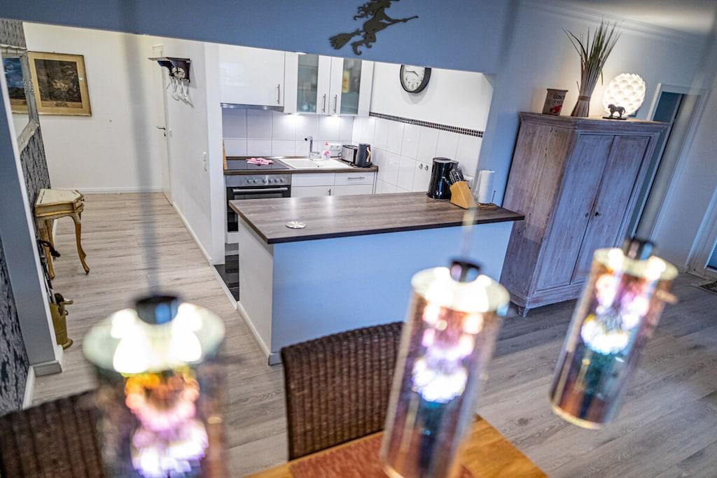 Unsere Ferienwohnung Hexenglück liegt im 1. Obergeschoss und mitten im Herzen von Hahnenklee mit wunderschönem Blick auf den Kranichsee. Direkt daneben befindet sich unsere 2. Ferienwohnung Hexenzauber Hahnenklee, die mit einer schalldichten Zwischentür verbunden ist. Bei Bedarf, zB 2 Familien, können Sie diese dazu mieten. Sie bekommen dann den Schlüssel. Wir haben die Wohnung individuell eingerichtet, so dass Sie sich wie zu Hause fühlen. Indirekte Beleuchtung mit vielen Möglichkeiten runden das Wohlfühlerlebnis ab. Eine schöne Sofaecke lädt zu Fernsehabenden ein und Sie können einen Ethanolkamin anzünden für gemütliche Winterstimmung. Die Küche hat einen grossen Küchentresen und sie haben einen wunderschönen Blick auf den See. Im Schlafzimmer finden Sie ein gemütliches Doppelbett und einen grossen Kleiderschrank. Parkplätze sind im Hof vorhanden.