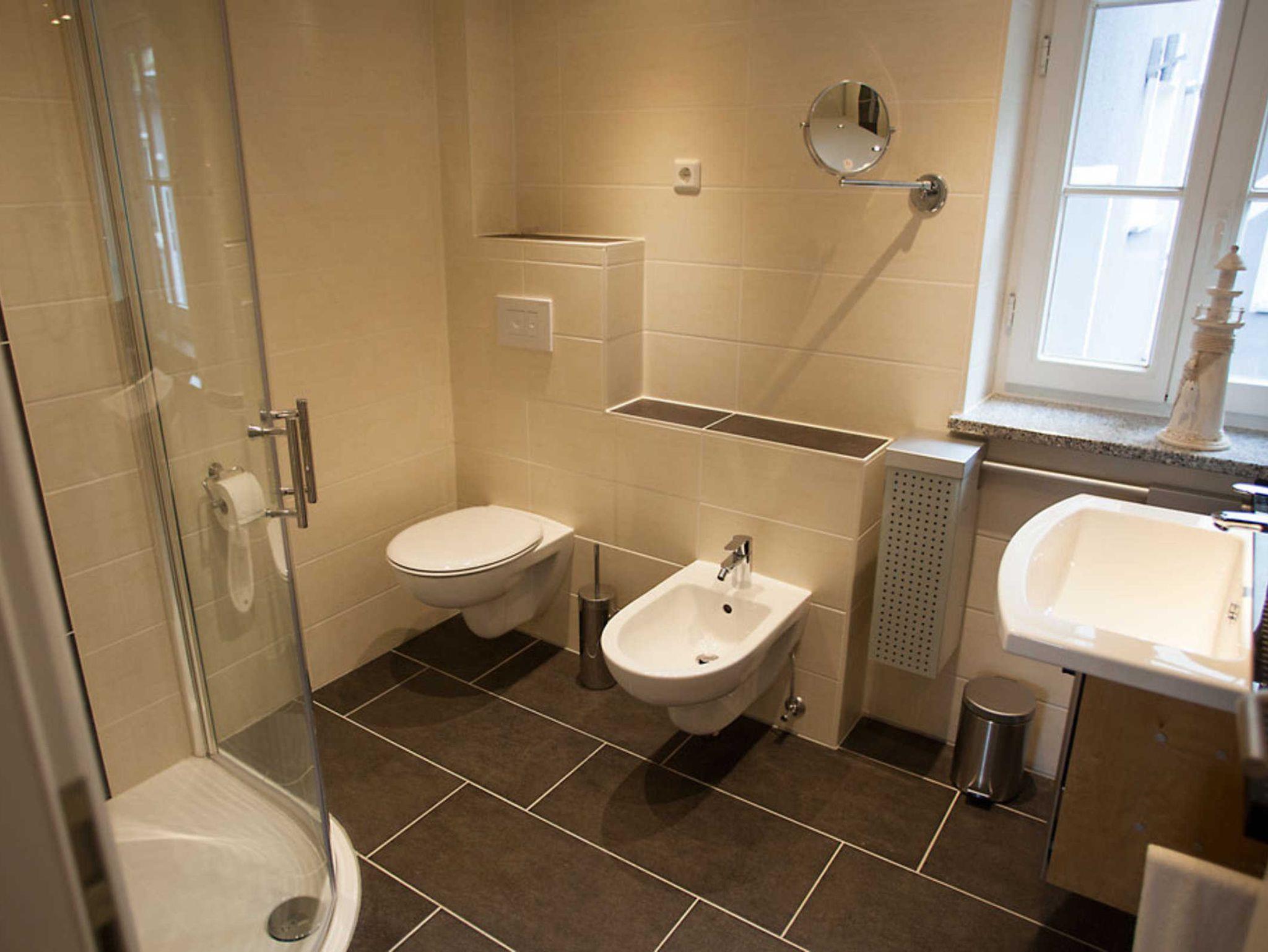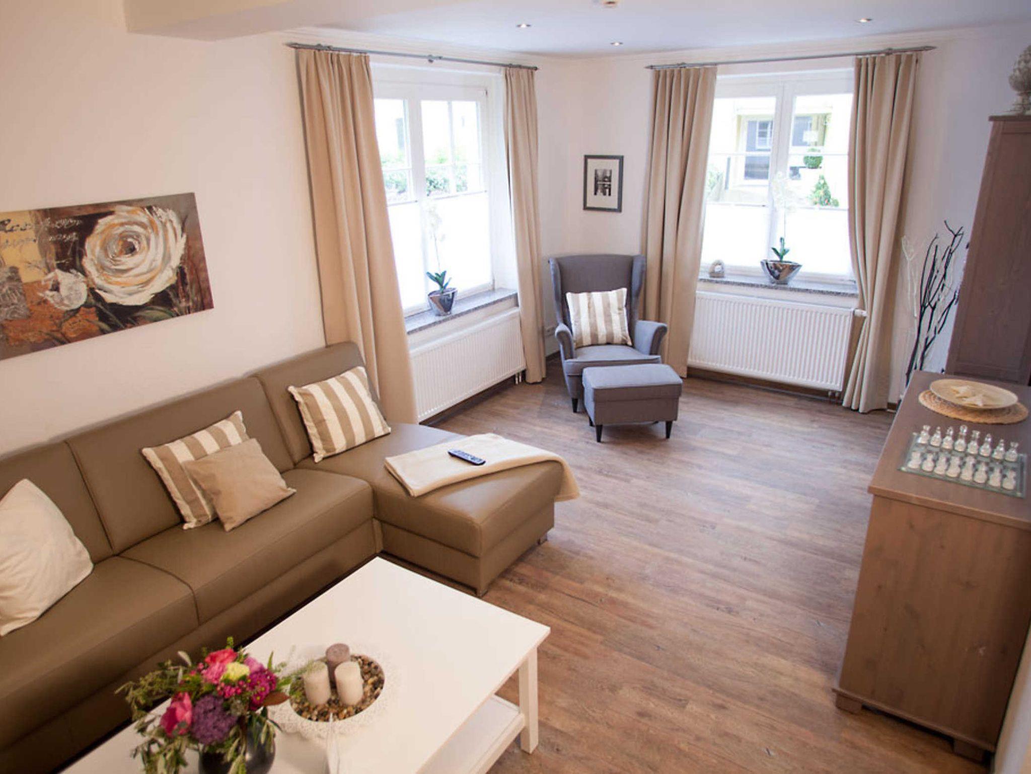 Mit 67m² ist die Ferienwohnung Rammelsberg die flächenmäßig größte unserer fünf Ferienwohnungen. Bis zu vier Personen finden hier bequem Platz, denn neben dem Schlafzimmer mit Boxspringbetten für zwei Personen bietet die komfortable Schlaf-Couch eine Schlafmöglichkeit für bis zu zwei weitere Personen. Neben dem modernen Badezimmer verfügt diese Ferienwohnung noch über ein separates Gäste-WC – jeweils mit Fußbodenheizung. Und im voll ausgestatteten offenen Koch-Essbereich findet die ganze Familie Platz für ein ausgiebiges Frühstück oder gemütliche Koch- und Spieleabende.