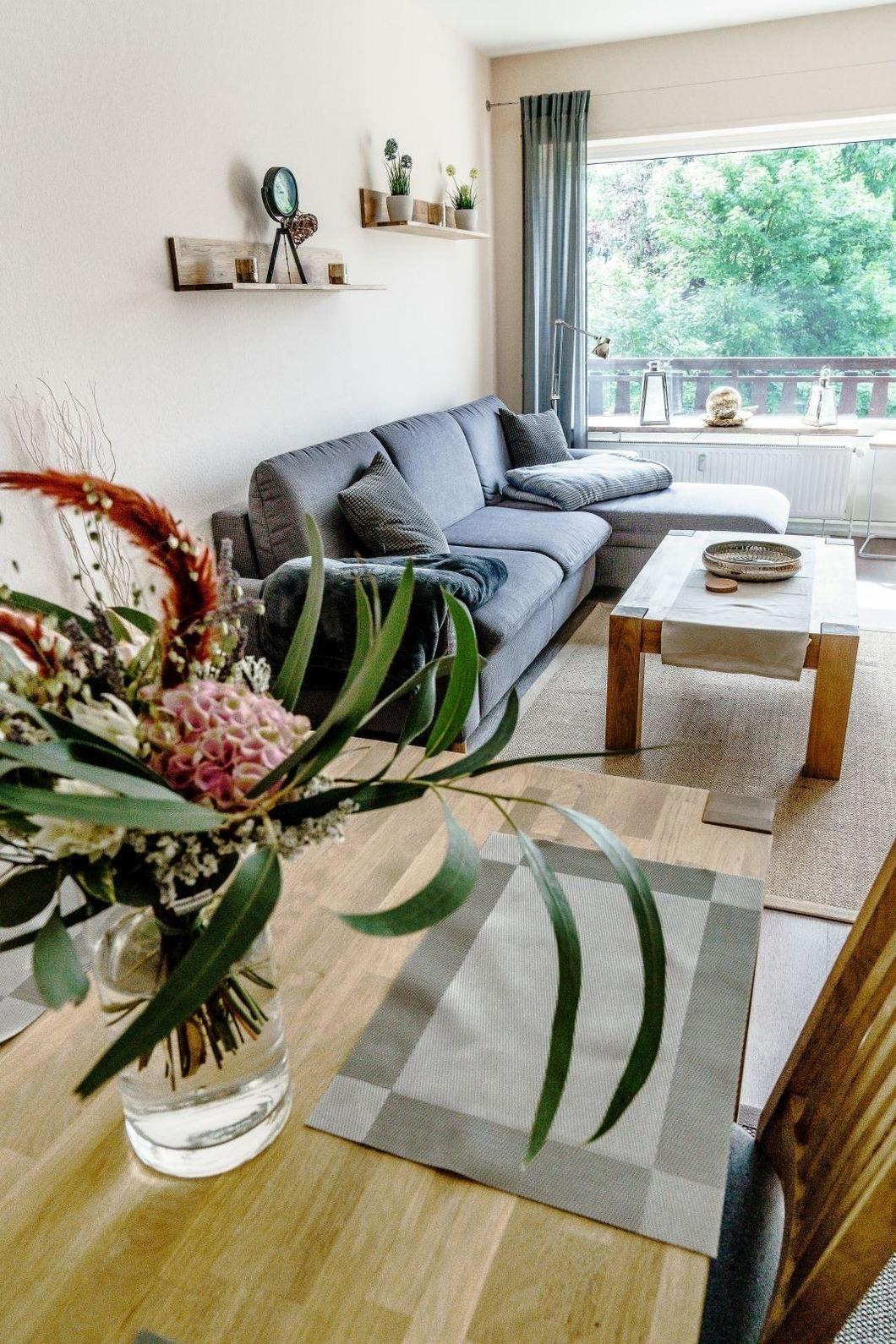 Die Ferienwohnung bietet eine einladende Atmosphäre mit durchdachter Raumaufteilung. Das Schlafzimmer ist mit einem komfortablen Doppelbett ausgestattet, während das Wohnschlafzimmer eine gemütliche Schlafcouch für zusätzliche Gäste bereithält.