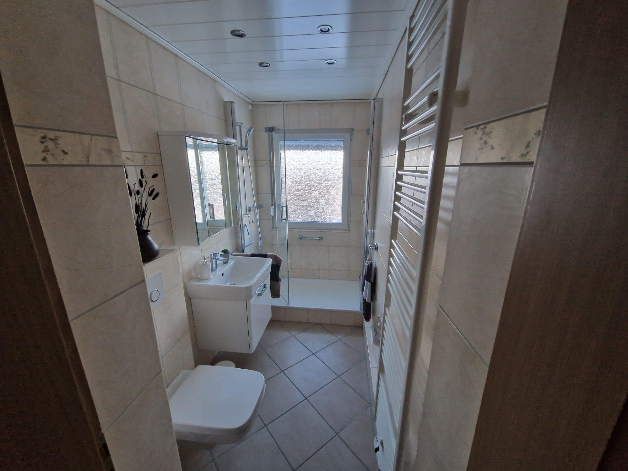 Bad: große Dusche und WC
