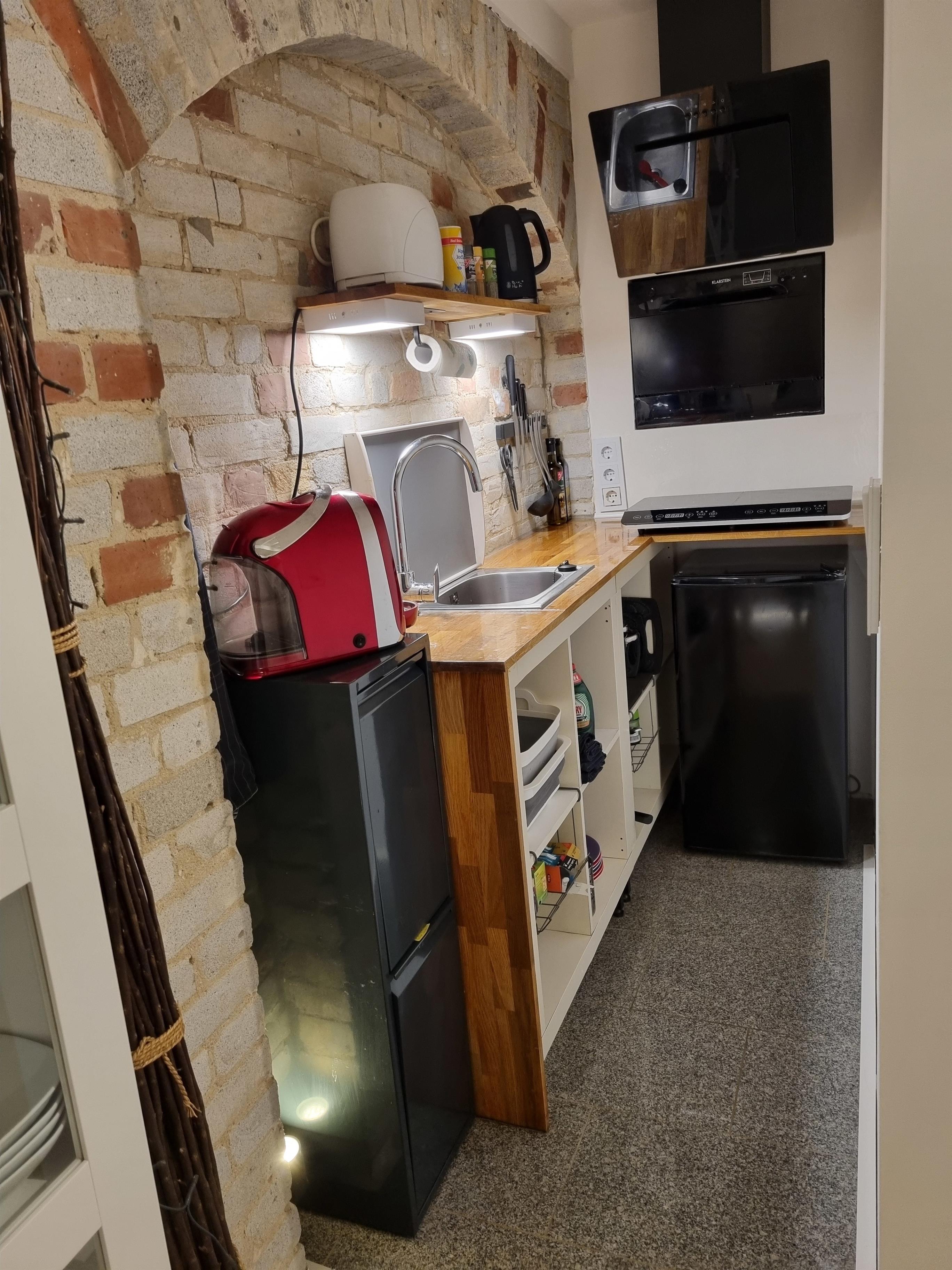 Kochgelegenheit, Wasserkocher, Kaffeeautomat und Toaster sowie andere Gegenständen für eine Grundausstattung ermöglichen Ihnen die Zubereitung kleiner Mahlzeiten. Der kleine Geschirrspüler hilft beim Abwasch. Sollten Sie sich lieber versorgen lassen, so sind Sie in nur fünf Minuten fußläufig in der Altstadt von Goslar mit Restaurants und Cafes.