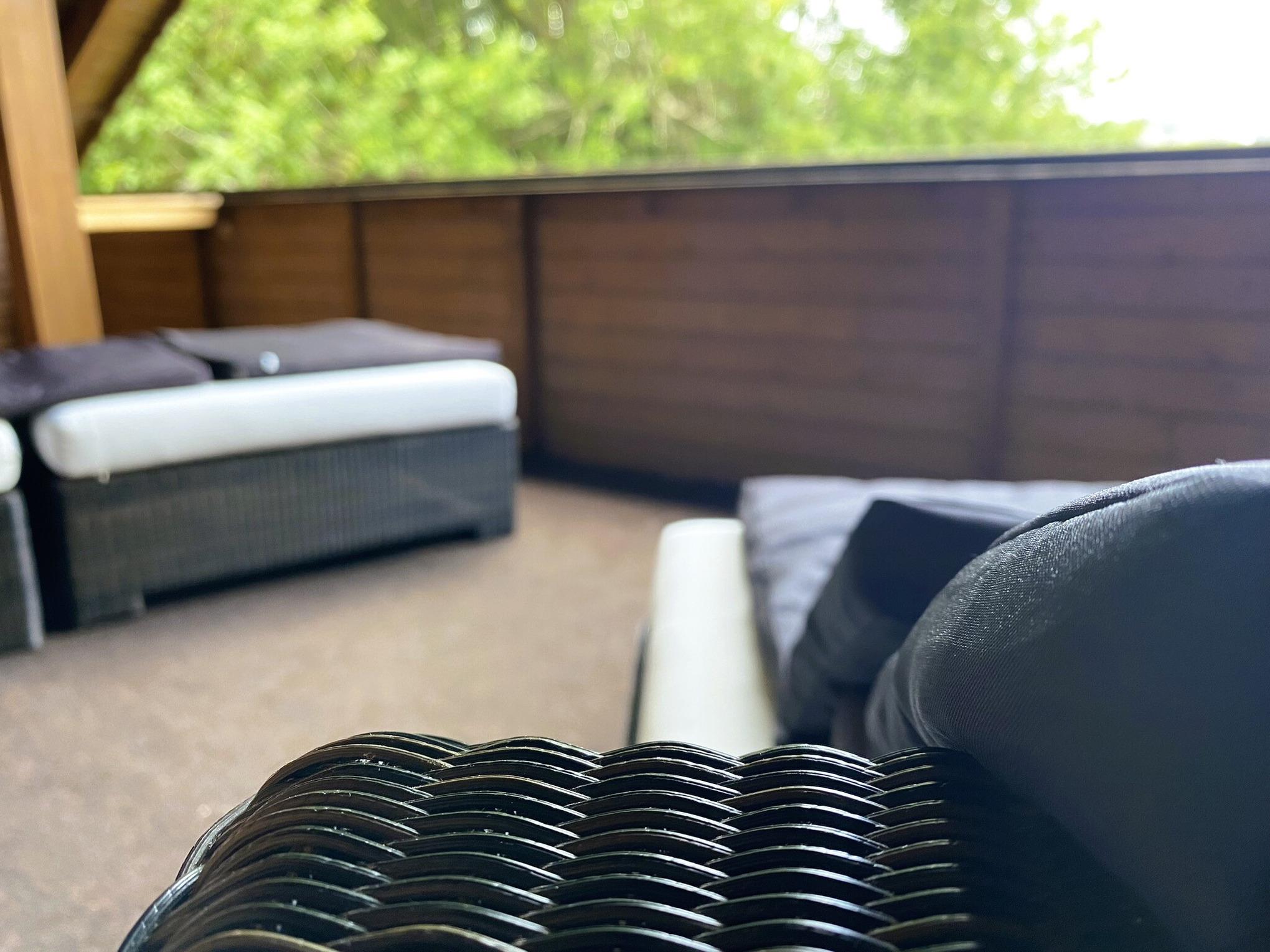Im zweiten Schlafzimmer in der oberen Etage finden Sie eine weitere entspannende Rückzugsmöglichkeit. Liebevoll gestaltet und mit einem komfortablen Bett ausgestattet, bietet dieses Zimmer eine angenehme Atmosphäre für einen erholsamen Schlaf. Es besitzt ebenfalls eine Liegeecke für Ihren Hund sowie einen direkten Zugang zum Balkon.