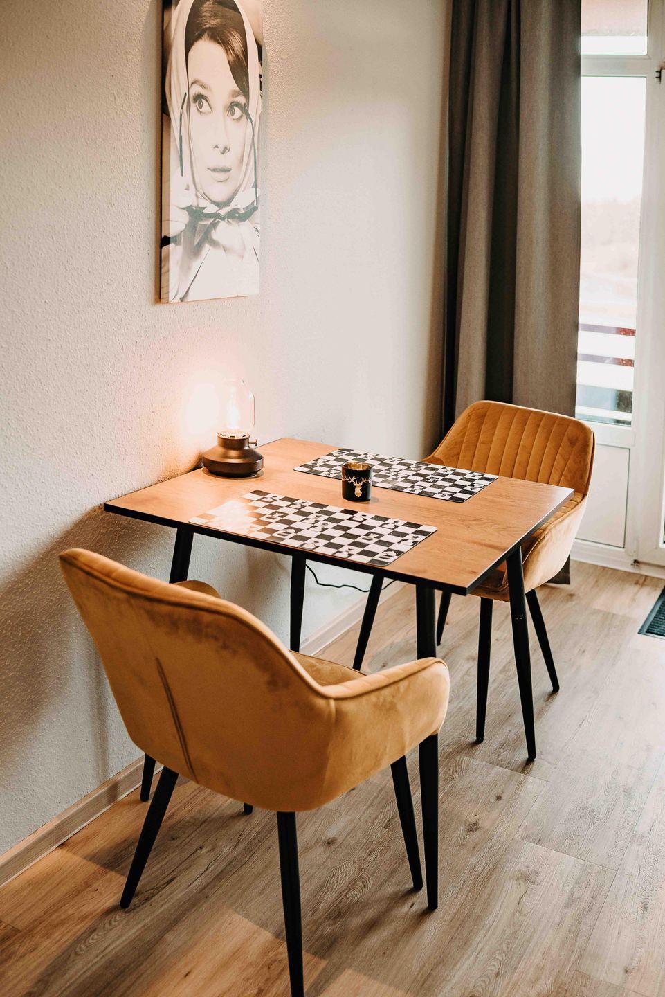 Das Appartement verfügt über ein gemütliches Doppelbett, welches zum Träumen einlädt. Auf der komfortablen Schlafcouch kann man herrlich vor dem Fernseher entspannen. Zusätzlich ist das Appartement mit einer voll ausgestatteten Pantry Küche versehen, die alles für kleinere Mahlzeiten bietet. Auf dem Balkon mit Blick auf den Kranichsee können Sie den Tag ausklingen lassen.