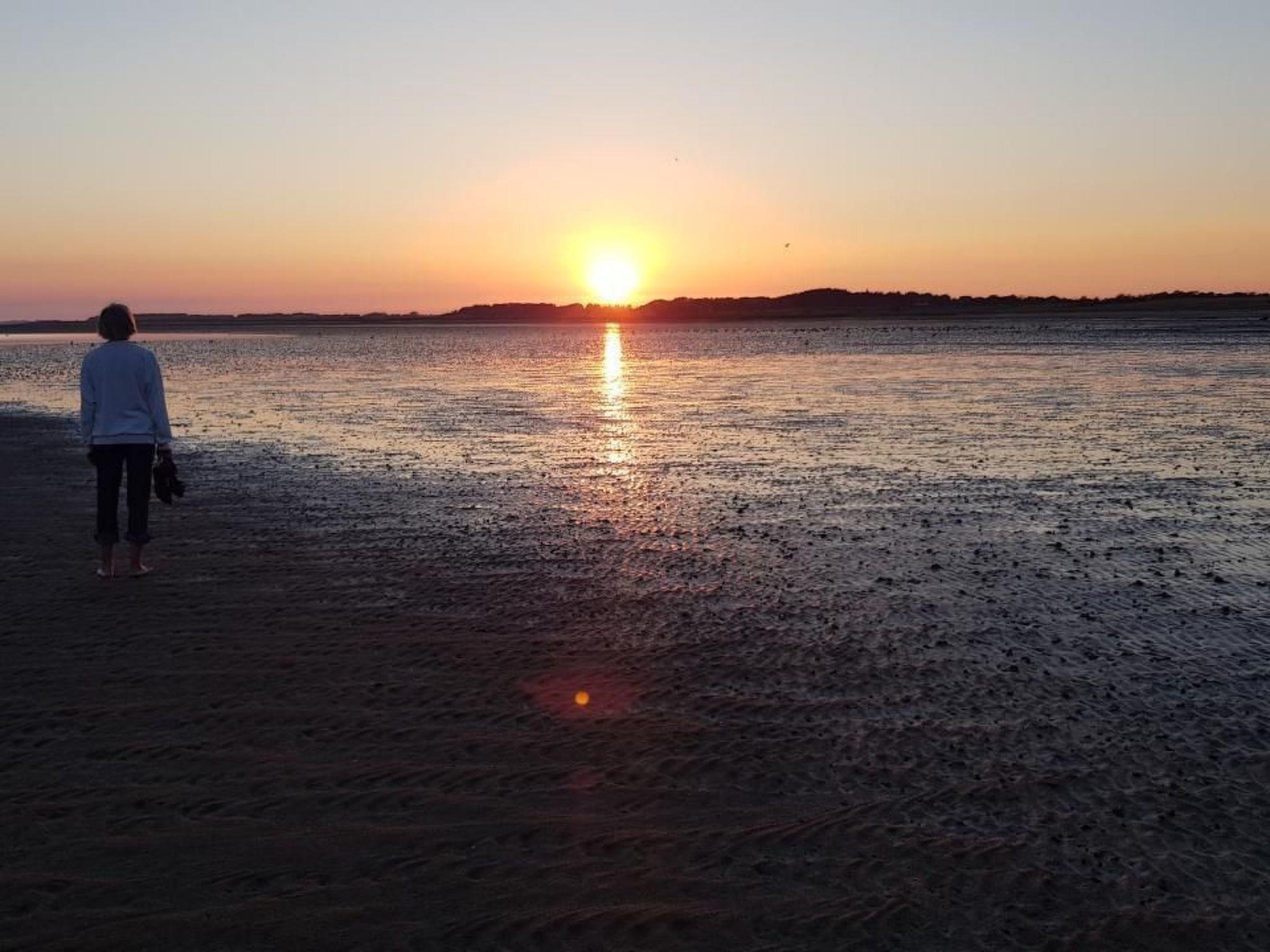This quiet holiday home on Föhr is located on the south beach of the island in the Goting district of Nieblum, not far from the Goting cliff, 7 km from Wyk. The beach is only about 150 metres away, and from the converted attic you have a wonderful view of the south beach and the island of Amrum. However, they are only allowed on the ground floor. The house is a non-smoking houseThe house includes on the ground floor a 25m² large, fully furnished living room a bedroom with 2 separate beds and built-in wardrobes a bathroom with shower and hairdryer and a separate toilet, a kitchenette with electric cooker, oven, grill, dishwasher and refrigerator with *** freezer compartment. A toaster and a hot water boiler are also available, a washing machine for free use is located in a separate, lockable utility room and the holiday home is connected to the Internet via W-LAN. In the converted attic - around 50 m² - there are 2 beds, a colour TV with satellite reception, a stereo system and a DVD player.the house is fully furnished. There are plenty of crockery, glasses, cutlery and kitchen utensils, and please bring your own bed linen, towels and kitchen towels. The house has gas heating, hot and cold running water, and from the living area you can step directly onto the wind-protected terrace. 500 m² of lawn surround the holiday home. It is protected from outside views by a thuja hedge. You can park your car on the property behind the house.garden furniture and bicycles, which can be used at your own risk, are located in a lockable storage room directly at the house.