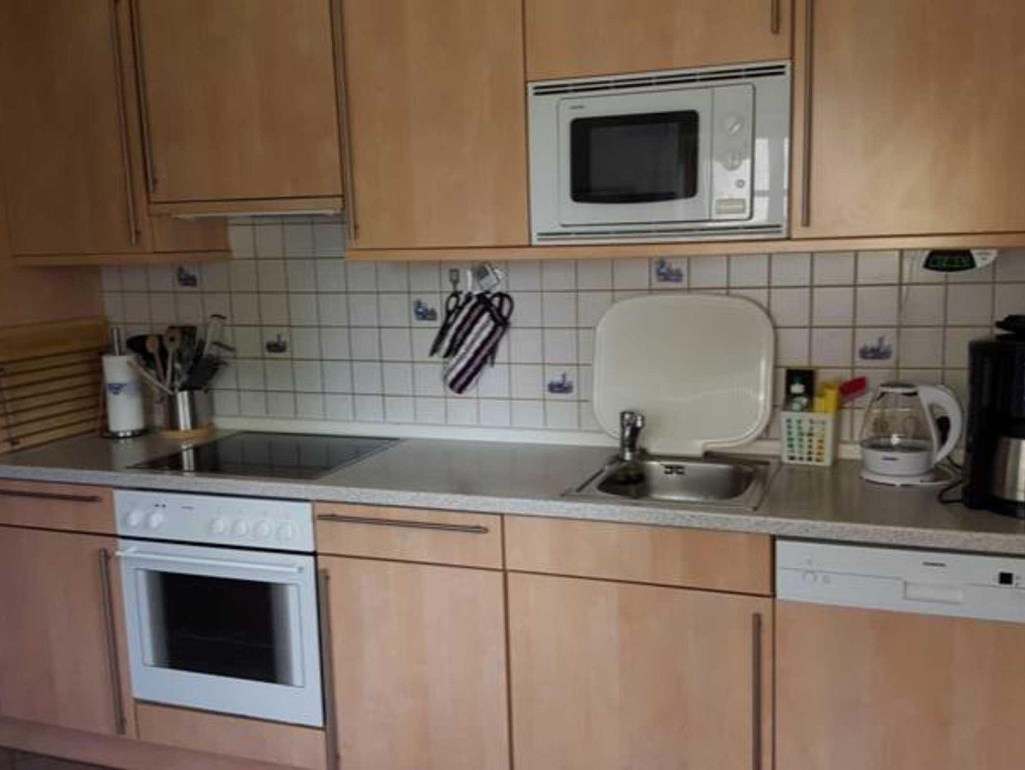 Küche / Haushalt: Backofen, Bügelbrett und -eisen, Filterkaffeemaschine, Gefrierfach, Geschirrspüler, Mikrowelle, Wäschetrockner, Waschmaschine.