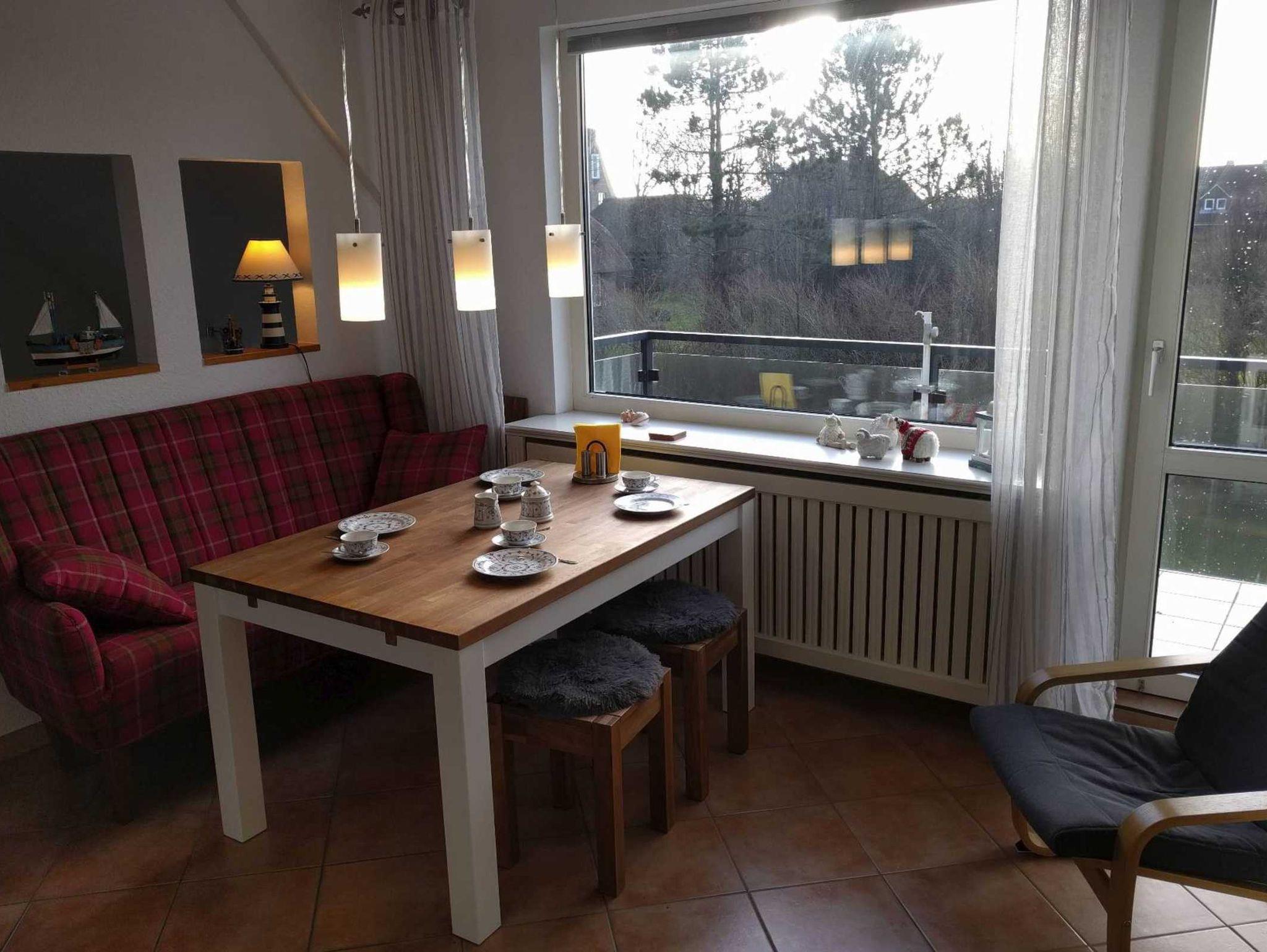 Die 65 qm große, helle und schön eingerichtete Obergeschosswohnung mit Südbalkon bietet Ruhe und Erholung für vier Personen.Die Wohnung bietet ein helles Wohnzimmer, ein geräumiges Duschbad, eine Küche mit Geschirrspüler,1 Schlafzimmer mit direktem Durchgang zum Wohnzimmer, 1 Schlafzimmer mit zwei Einzelbetten).Zum Komfort der Wohnung gehören großer Sat-LCD-TV, CD/DVD-Player, Münzwaschmaschine - und Trockner und ein PKW-Stellplatz direkt am Haus. Von Ostern bis zu den Herbstferien gibt es gleich in der Nähe einen Bäckerwagen mit frischen Brötchen und Kleinigkeiten fürs Frühstück täglich von 7.30-10.30 Uhr). Das nächste Lebensmittelgeschaeft befindet sich in Nieblum. Ein wirklich schönen Urlaubsdomizil in dem Sie sich wohlfühlen werden!