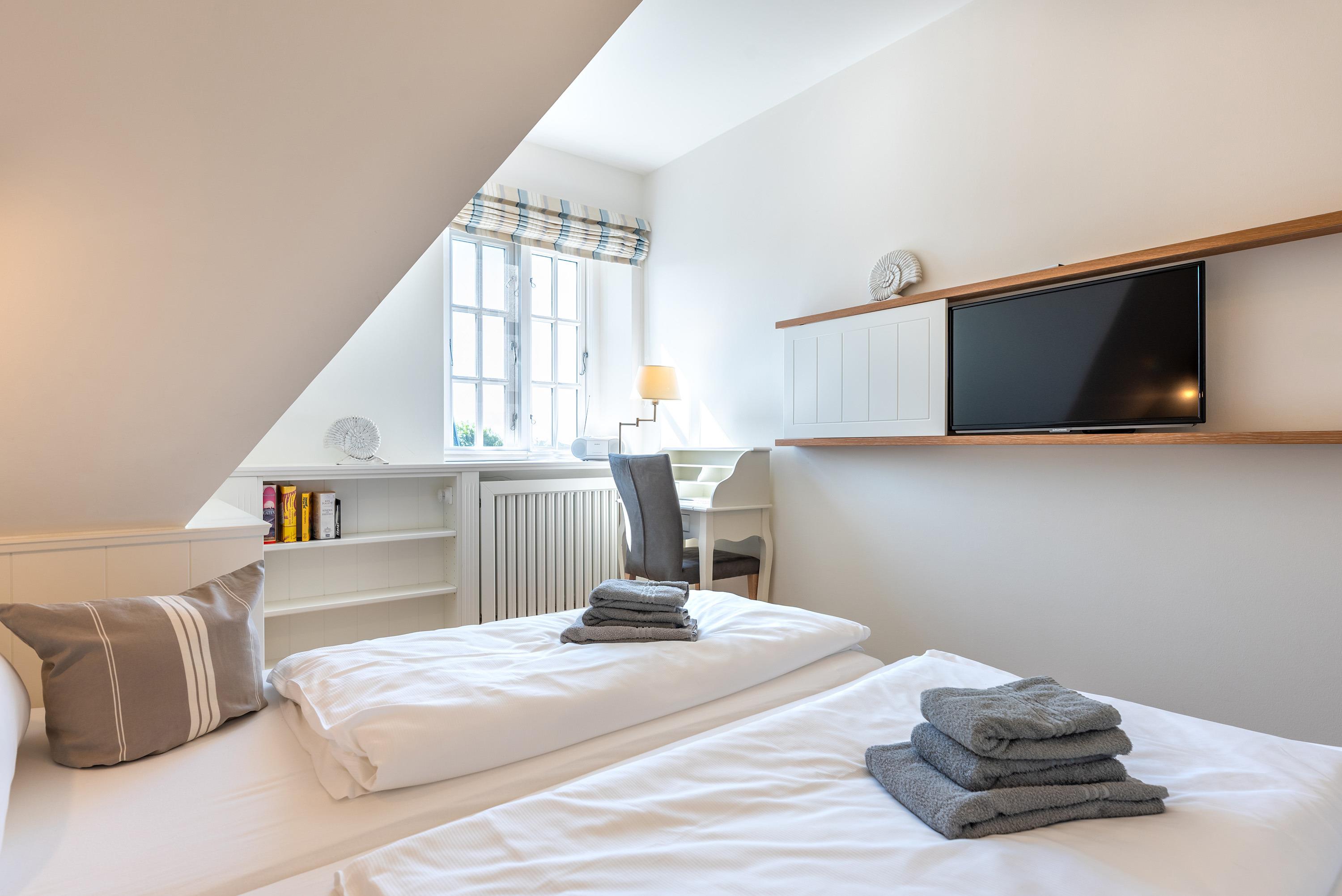 Verbringen Sie Ihren Urlaub am Kliff. Goting ist der ruhige Ortsteil von Nieblum und liegt am einzigen Kliff der Insel. Die Reetdachdoppelhaushälfte liegt auf einem ca. 570 qm großen, sonnigen Grundstück. Sie genießen einen freien Blick über die Wiesen bis hin zum Meer. Der Strand liegt fast direkt vor Ihrer Haustür und ist mit wenigen Schritten zu erreichen. Blicken Sie aus dem Obergeschoss auf die Nordsee - dieser Blick über das Wattenmeer und auf die Nachbarinsel Amrum ist einzigartig. In wenigen Minuten erreichen Sie Nieblum. Das Friesendorf gilt seit langem als eines der schönsten Dörfer in ganz Norddeutschland. Die alten Kapitänshäuser, gute Einkaufsmöglichkeiten, schöne Restaurants und nette Cafes machen es zu jeder Jahreszeit zu einem unvergesslichen Urlaubsort.