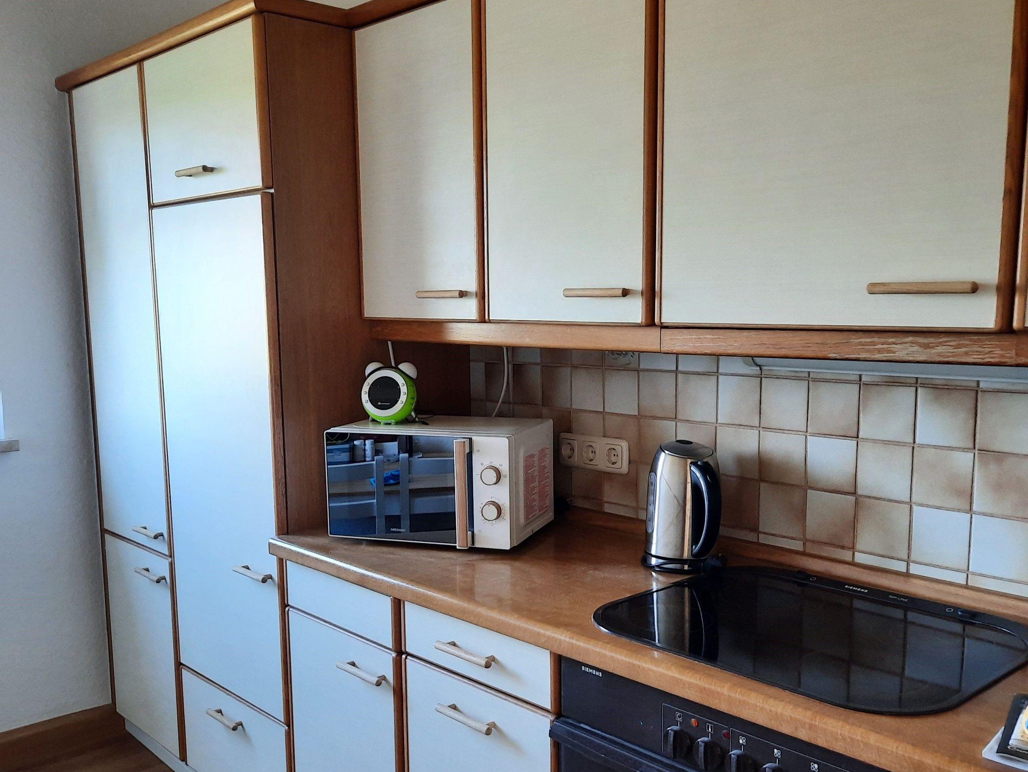 Die Küche ist voll ausgestattet mit Backofen, Kühlschrank, Mikrowelle, Kaffeemaschine, Toaster, Wasserkocher, Eisfach, ein kleiner Esstisch mit 4 Stühlen ist vorhanden.