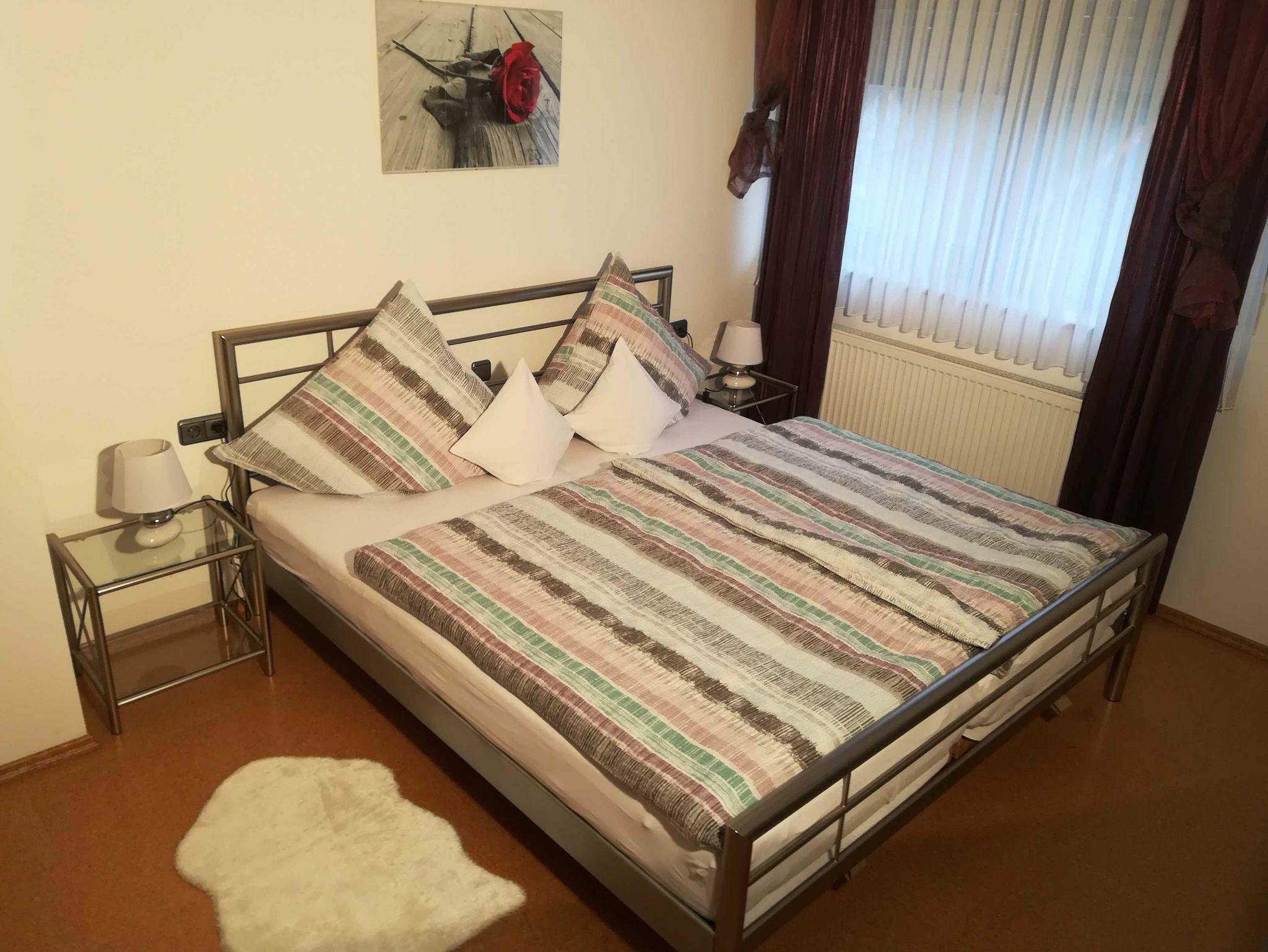 Das Schlafzimmer verfügt über ein Doppelbett (180x200cm), einen geräumigen Schrank sowie eine Kommode. Auf Nachfrage stellen wir gerne ein Kinderbett mit ins Zimmer.
