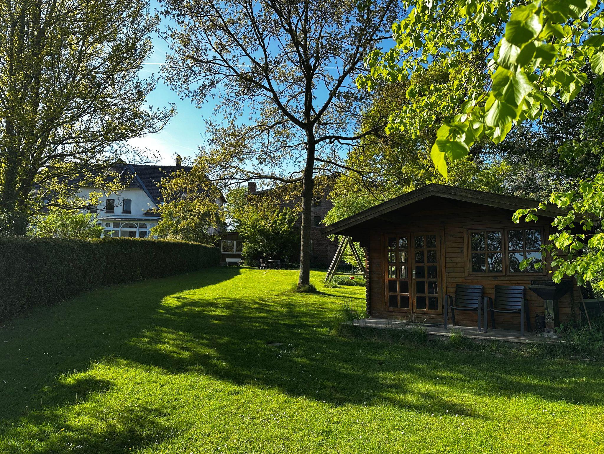 Im großen Garten stehen unseren Gästen ein Kinderspiel- und Grillplatz eine Liegewiese, eine Sitzecke sowie ein Gartenhaus zur Vefügung. Zwei Strandkörbe mit Blick aufs Wasser laden zum Verweilen ein.