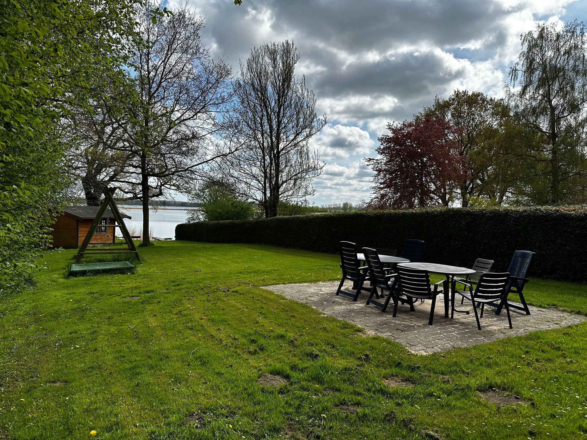 Im großen Garten stehen unseren Gästen ein Kinderspiel- und Grillplatz eine Liegewiese, eine Sitzecke sowie ein Gartenhaus zur Vefügung. Zwei Strandkörbe mit Blick aufs Wasser laden zum Verweilen ein.