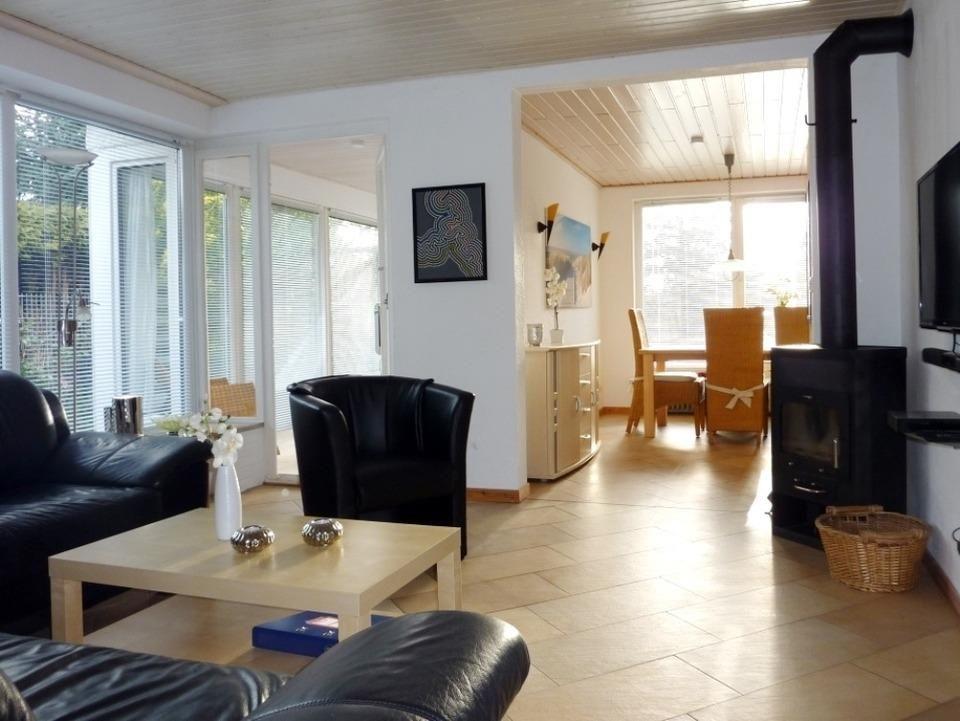Das ebenerdige Feriendomizil verfügt über 1 komb. Wohn-/Essbereich, 1 Wintergarten, 1 offene Küche, 3 Schlafräume, 2 Bäder sowie einen ca. 350 m² großen, komplett eingezäunten Garten.