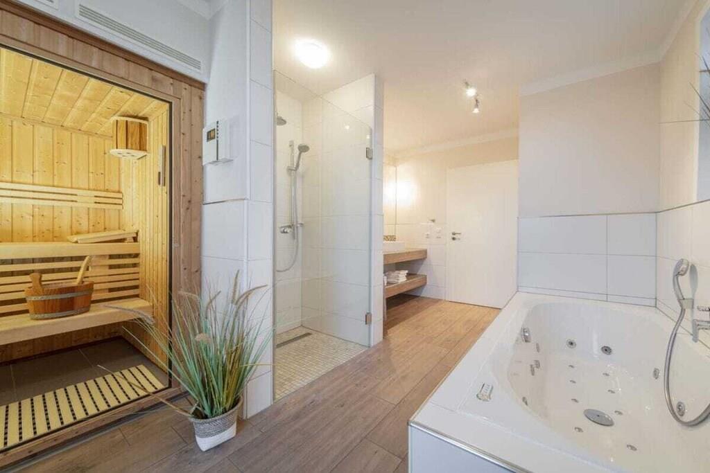 Stueetage: (åbent køkken(, , , tekøkken, sauna, Græsplæne, Fjernsyn, spisebord, pejs, kakkelovn, DVD-afspiller, radio, CD-afspiller, stereoanlæg, kogeplade, elkedel, brødrister, komfur, kaffemaskine, ovn, grill, mikrobølgeovn, opvaskemaskine , køleskab, fryser, hottub, havemøbler, solstole, baldakin), soveværelse(, , dobbeltseng), soveværelse(, , dobbeltseng), badeværelse(, , toilet, sauna, badekar, hottub, bruser, håndvask, vaskemaskine, føntørrer, Håndklæder inkl.)) , , , , Internetadgang, tørretumbler, vaskemaskine, varme, terrasse(, havemøbler, solstole, baldakin), parkering, strygebræt, strygejern, tørreskab