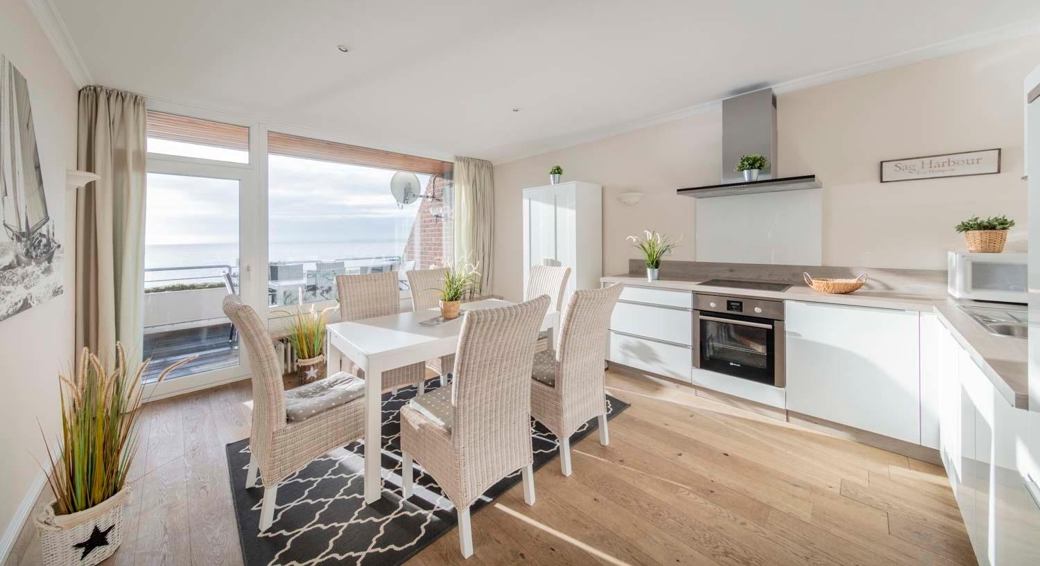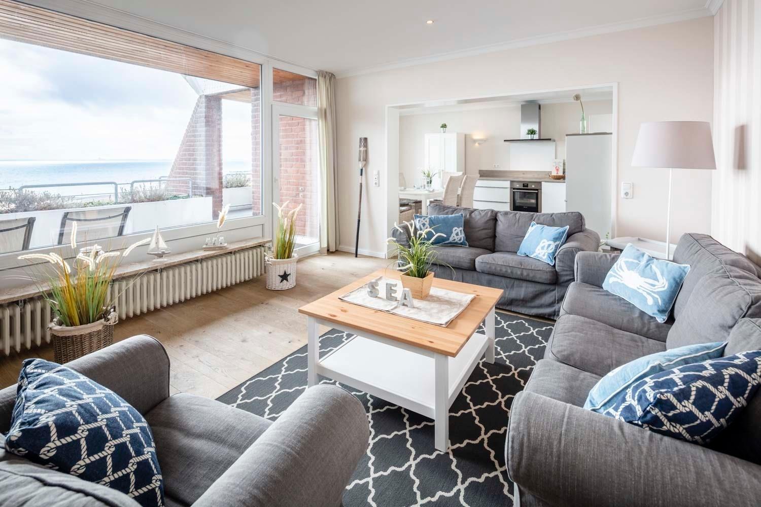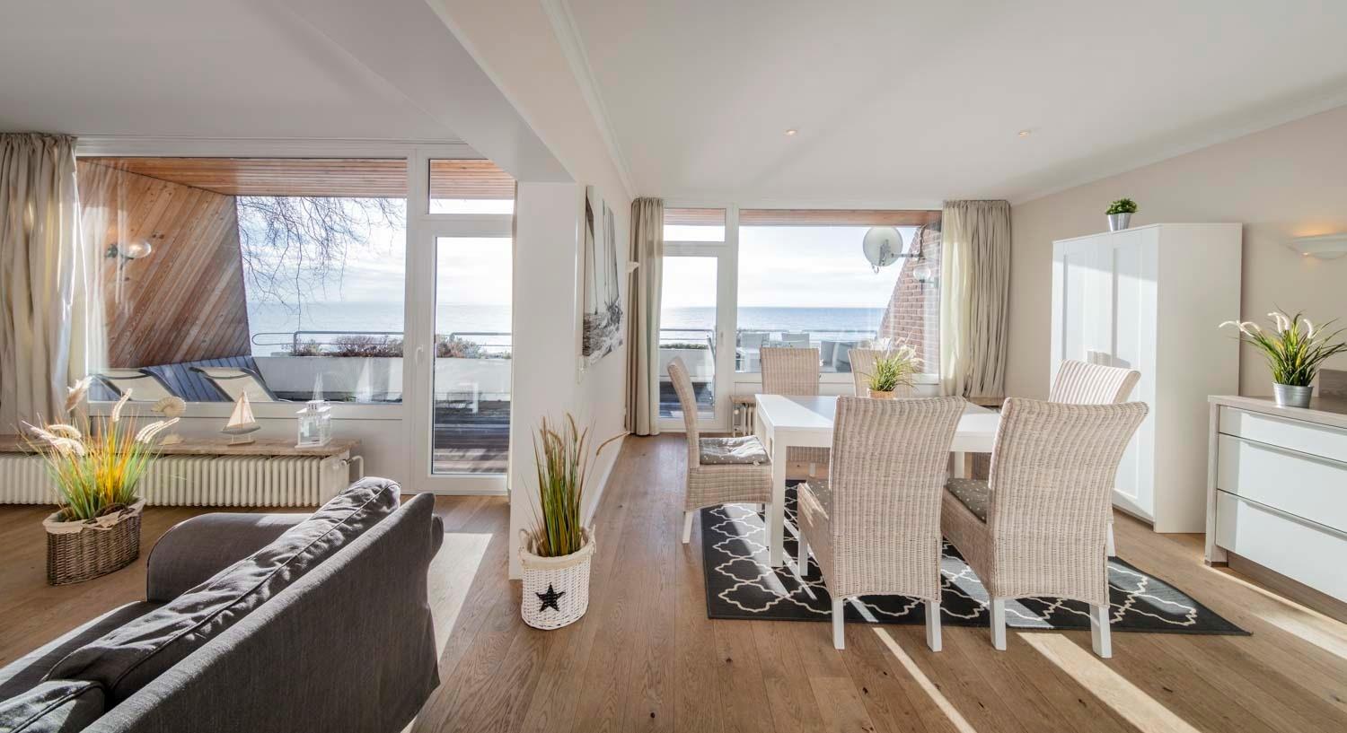 Die Ferienwohnung Strandsuite für 6 Personen zeigt sich in entwaffnender Pracht: Hochwertige Ausstattung, sensationelle Lage und postkarten-spektakulärer Meerblick.