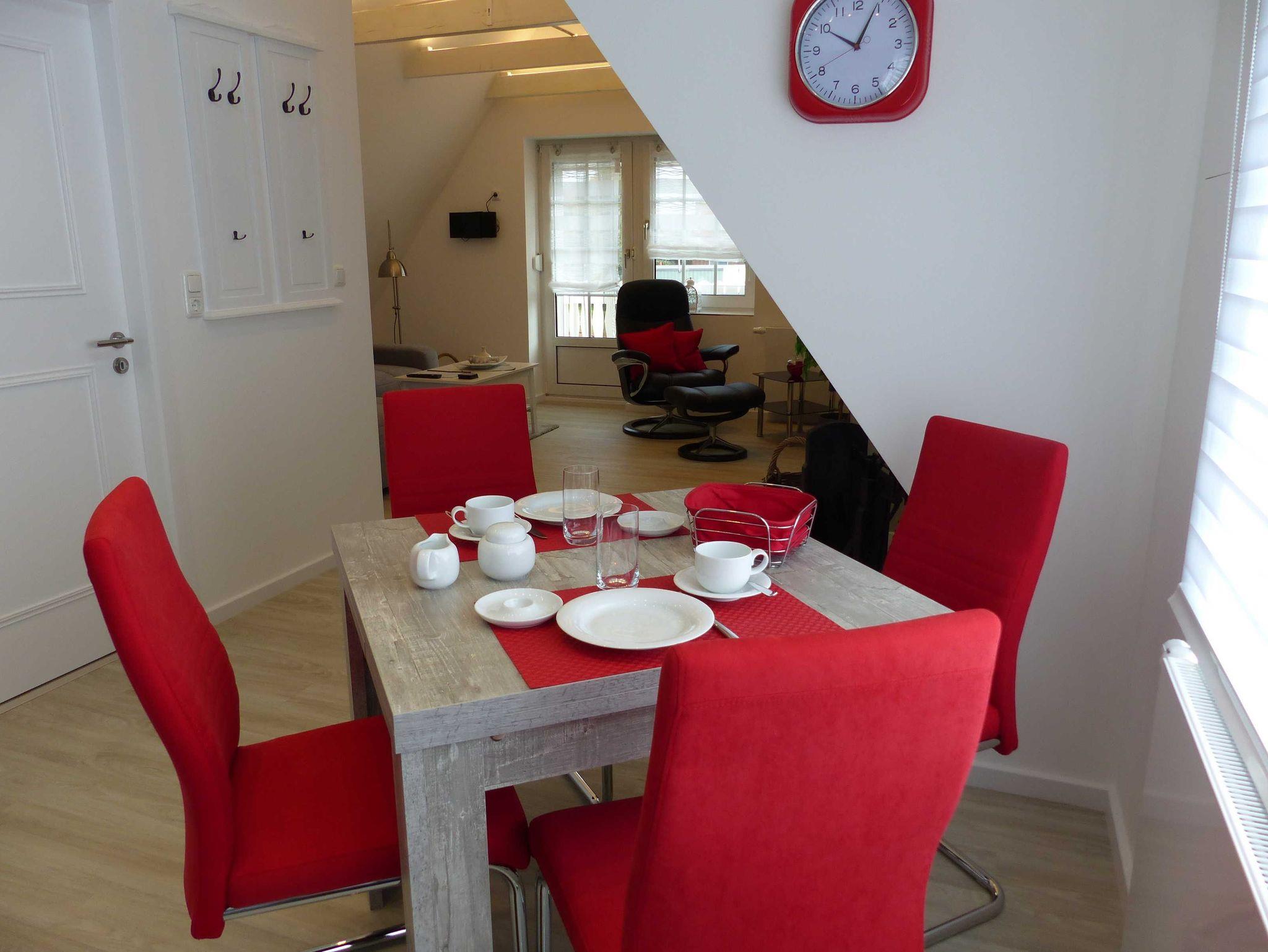 Auf einer Fläche von 60qm erwartet Sie eine neu renovierte Ferienwohnung mit gehobener Ausstattung im Landhausstil und einem größzügig ausgebauten Deckenbereich mit sichtbaren Dachbalken. Die Ferienwohnung Elbzeit befindet sich in der ersten Etage mit separatem Eingang. Das 20qm große Schlafzimmer mit einem Doppelbett 180x200 lädt zu einem erholsamen Schlaf ein. Die im Wohnraum integrierte, komplett ausgestattete Küchenzeile lässt kaum Wünsche offen. Induktionskochfeld, Multifunktionsbackofen mit integrierter Mikrowelle, Kühlschrank mit Gefrierfach, Geschirrspüler, Dunstabzugshaube sind selbstverständlich vorhanden. Ein TV-Flachbild, sowie ein Radio mit CD, sorgen für Unterhaltung. Der vorhandene WLAN-Anschluss kann kostenfrei genutzt werden. Weiterhin gehören zur Ausstattung ein Duschbad mit bodengleicher Dusche, Fön, Handtuchwärmer und Kosmetikspiegel. Das WC ist separat. Genießen Sie den Sonnenaufgang und den Sonnenuntergang auf dem Balkon zur Ost- bzw. zur Südwestseite. Zur Wohnung gehört ein Außenstellplatz direkt am Haus. Für mitgebrachte Fahrräder steht ein abschließbarer Fahrradschuppen zur Verfügung. Bettwäsche. Handtücher, Küchenhandtücher sind in der Wohnung vorhanden.