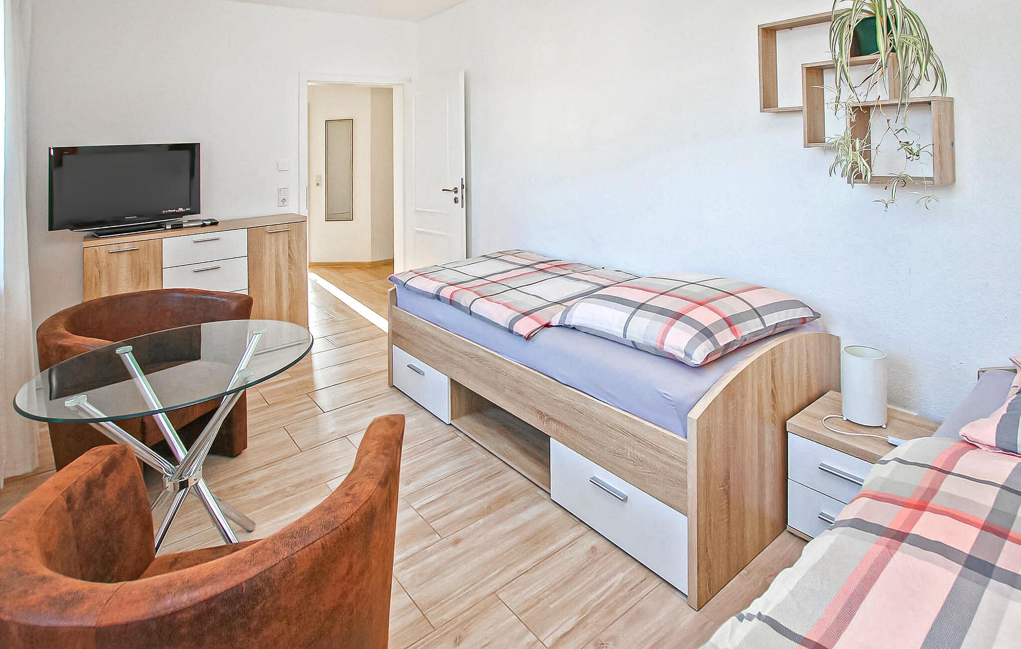 Soveværelse (nr. 1) - 2 Sovepladser. (Enkeltseng(e)).