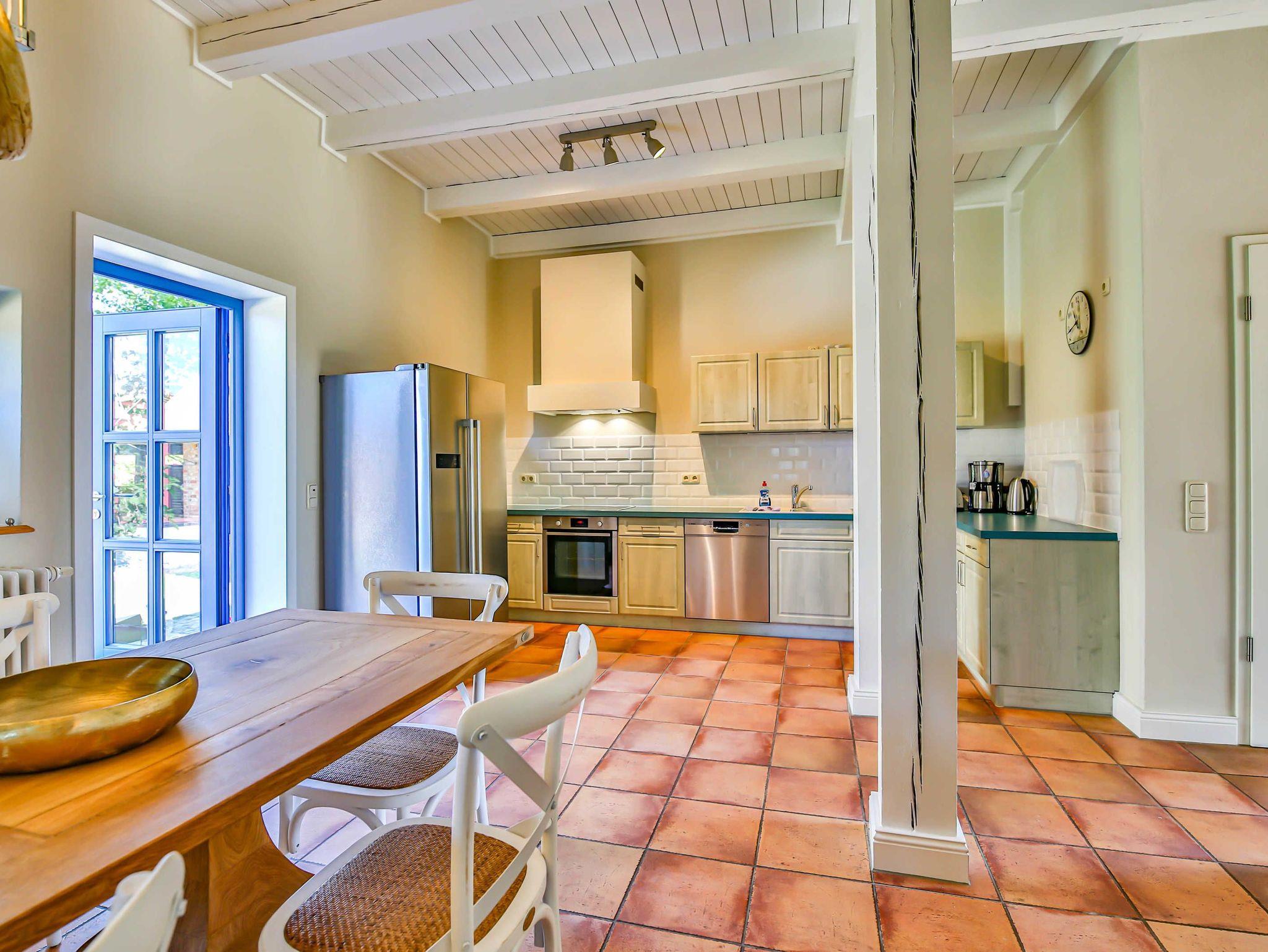Das Ferienhaus Blaukehlchen im Sonnenhof ist ein 5-Sterne Ferienhaus mit viel Liebe zum Detail. Das Haus bietet 5 Schlafzimmer, wovon eines über einen barrierefreien Zugang mit separater Teeküche und Bad en Suite verfügt. Eine große voll ausgestattete Wohnküche, 3 Bäder und eine große Sonnenterrasse im anliegenden Garten. Das Haus befindet sich umgeben von Natur und direkt am Achterwasser. Zu empfehlen für Urlaub mit der Familie oder Freunden mit bis zu 10 Personen.