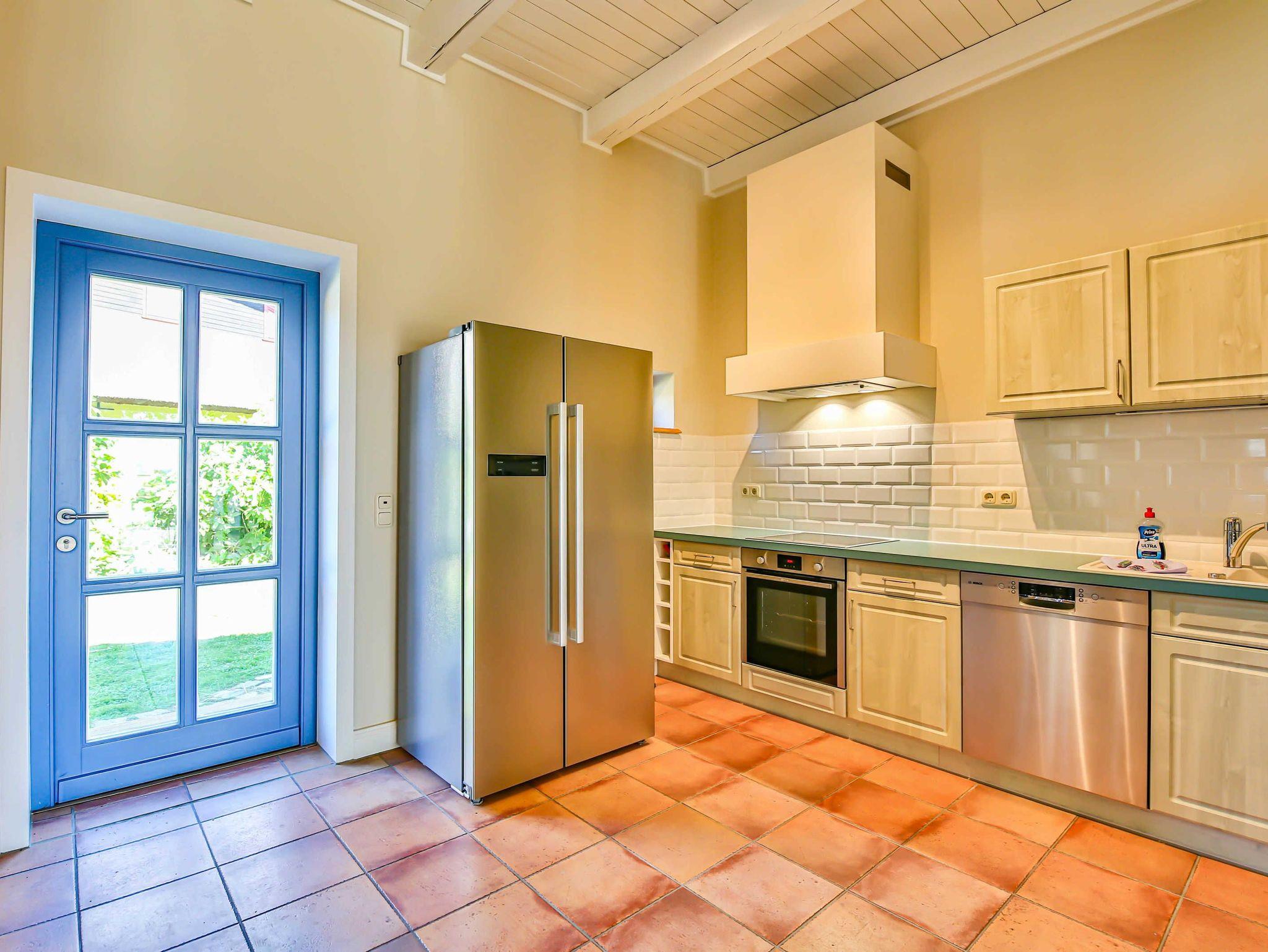 - Komplett eingerichtete Küche mit Ofen, Herd und Mikrowelle