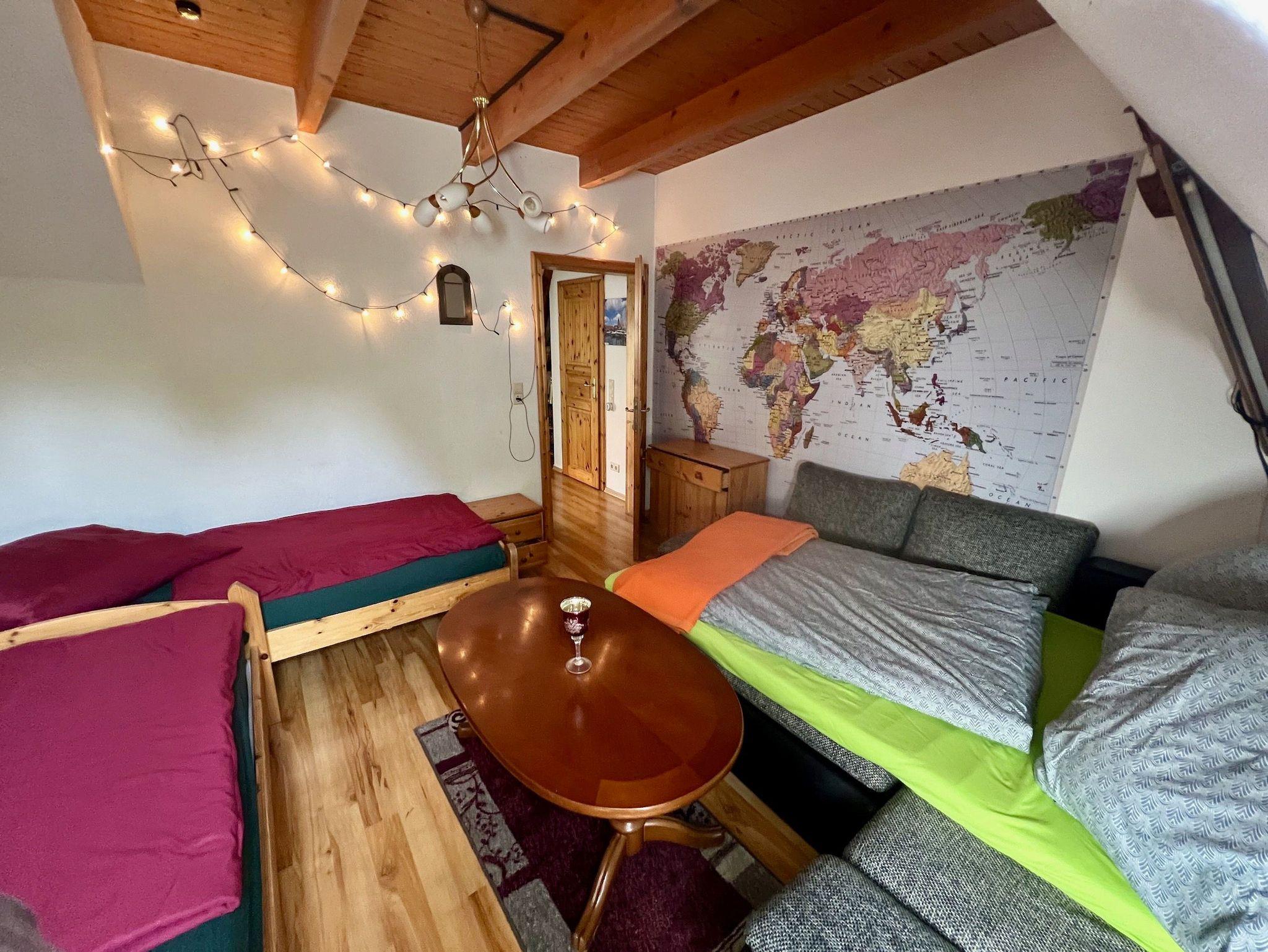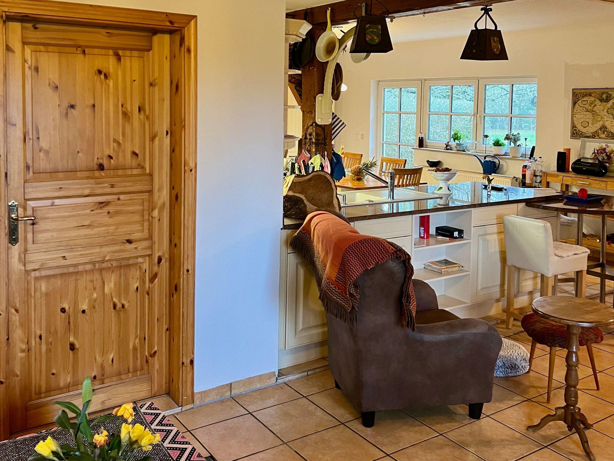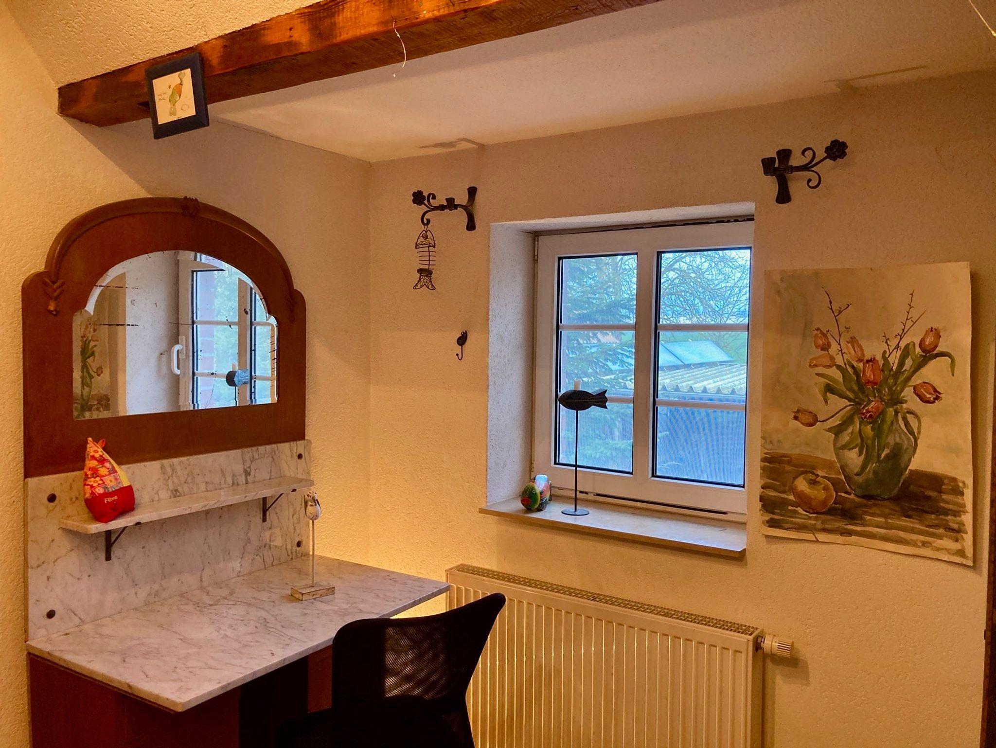 Frische Eier bekommen Sie von unseren Hühnern und Kinder vom Storch, der im Sommer auf unserem Hof lebt. Beides ohne Garantie. Die Wohnung verfügt über drei Schlafzimmer in den oberen Etagen.