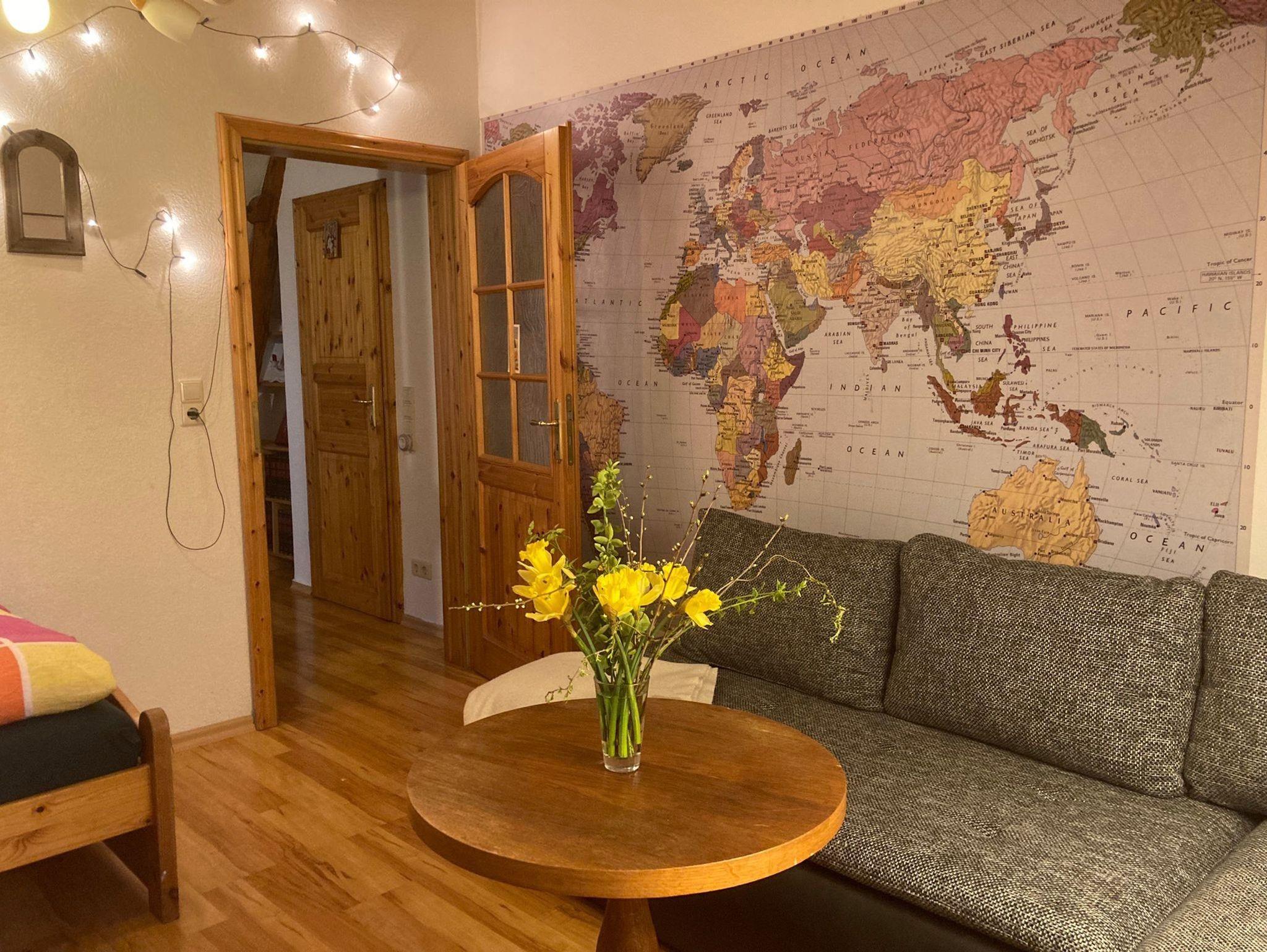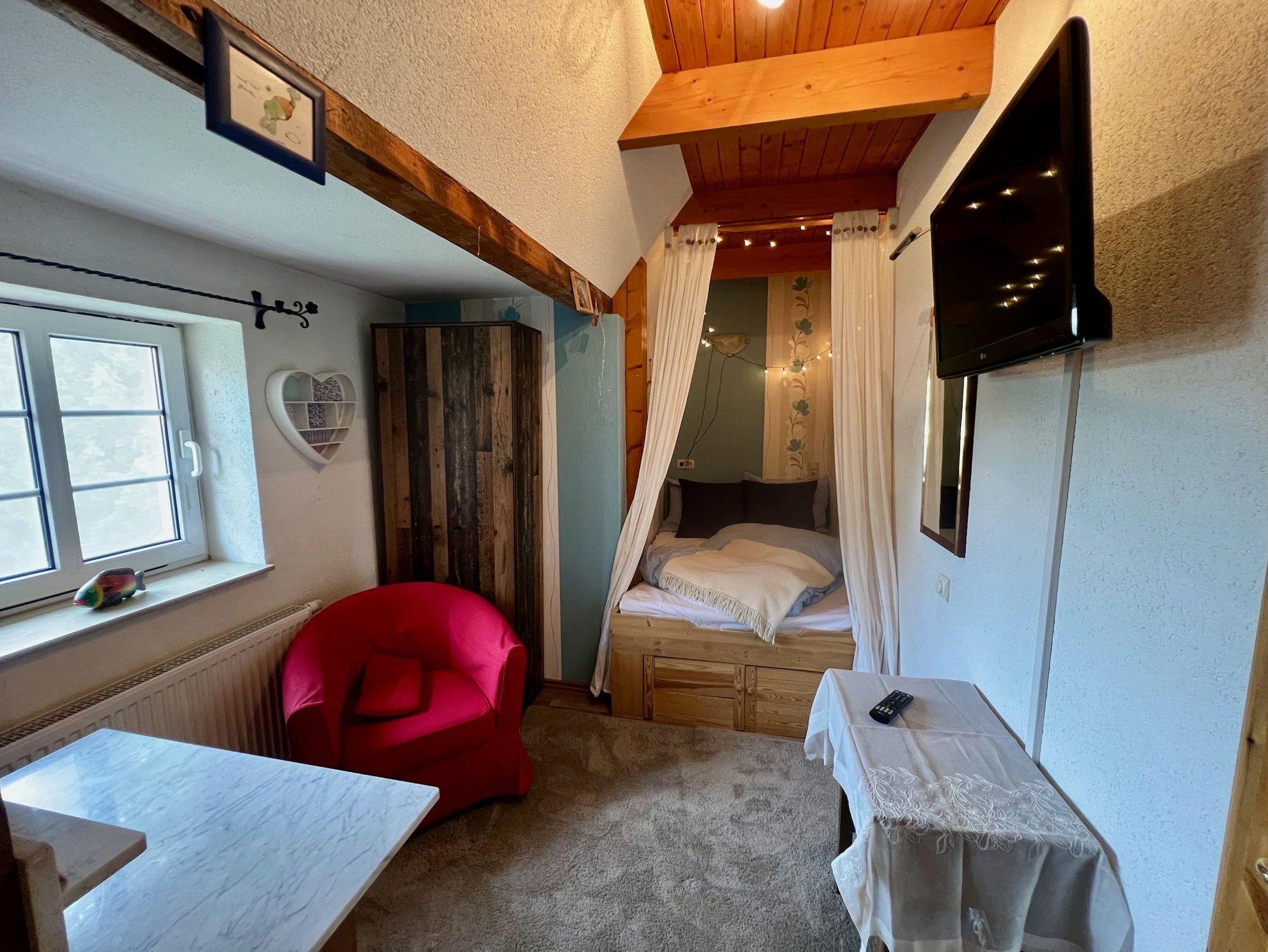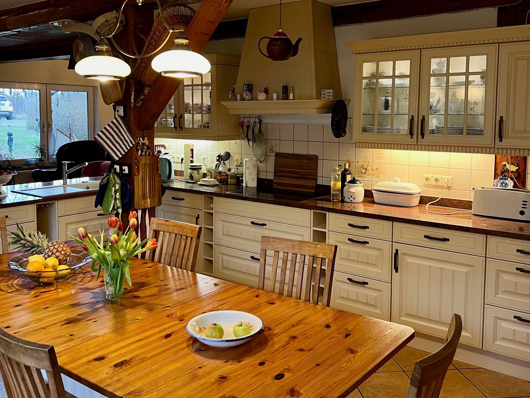Frische Eier bekommen Sie von unseren Hühnern und Kinder vom Storch, der im Sommer auf unserem Hof lebt. Beides ohne Garantie. Die Wohnung verfügt über drei Schlafzimmer in den oberen Etagen.