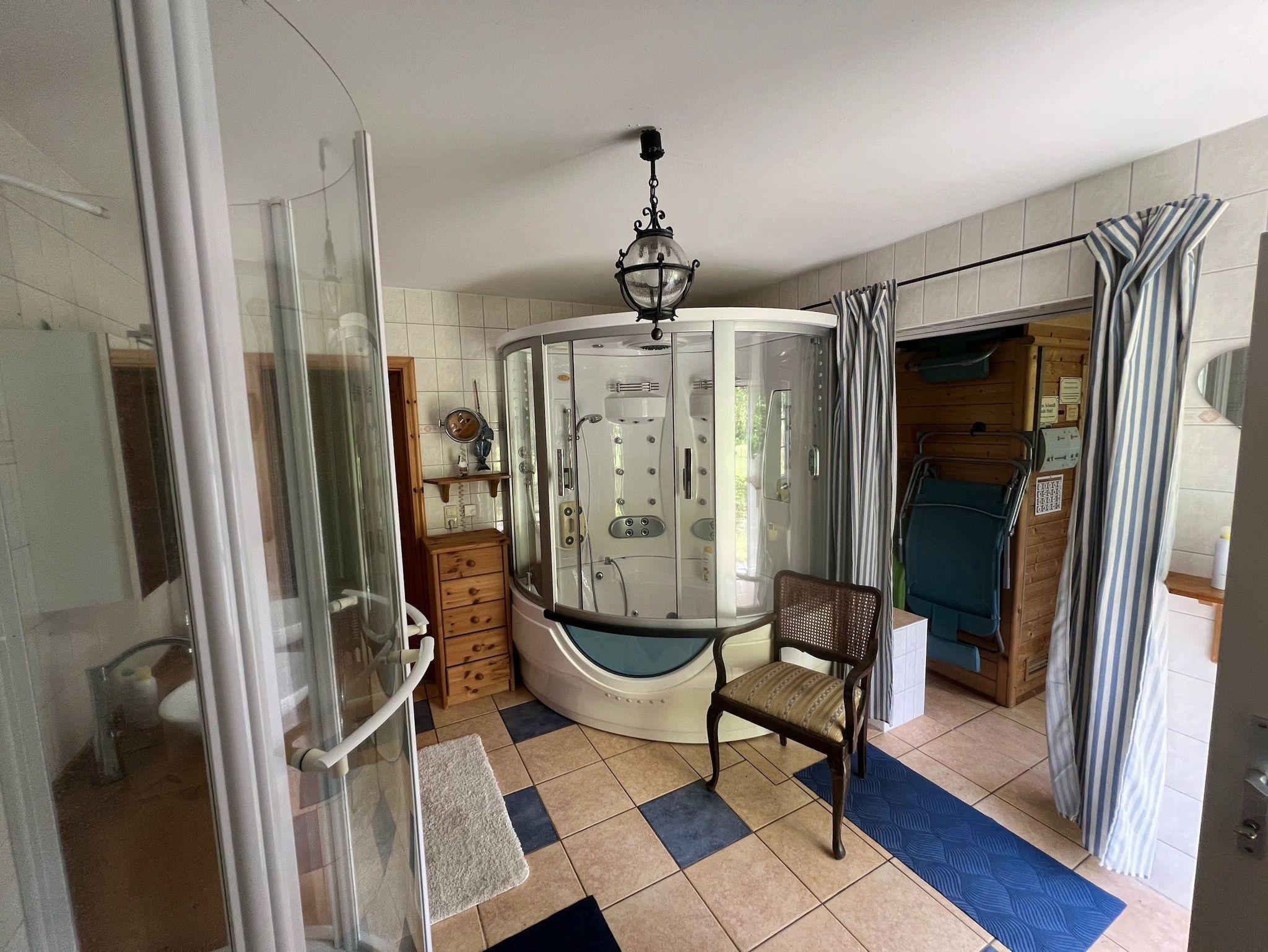 In dieser großen, familienfreundliche Ferienwohnung mit eingezäuntem Garten, Terrasse, Kamin, Sauna, Whirlpool, Stellplatz und Abstellmöglichkeiten für Fahrräder sind Sie und Ihre Haustiere herzlich willkommen.
