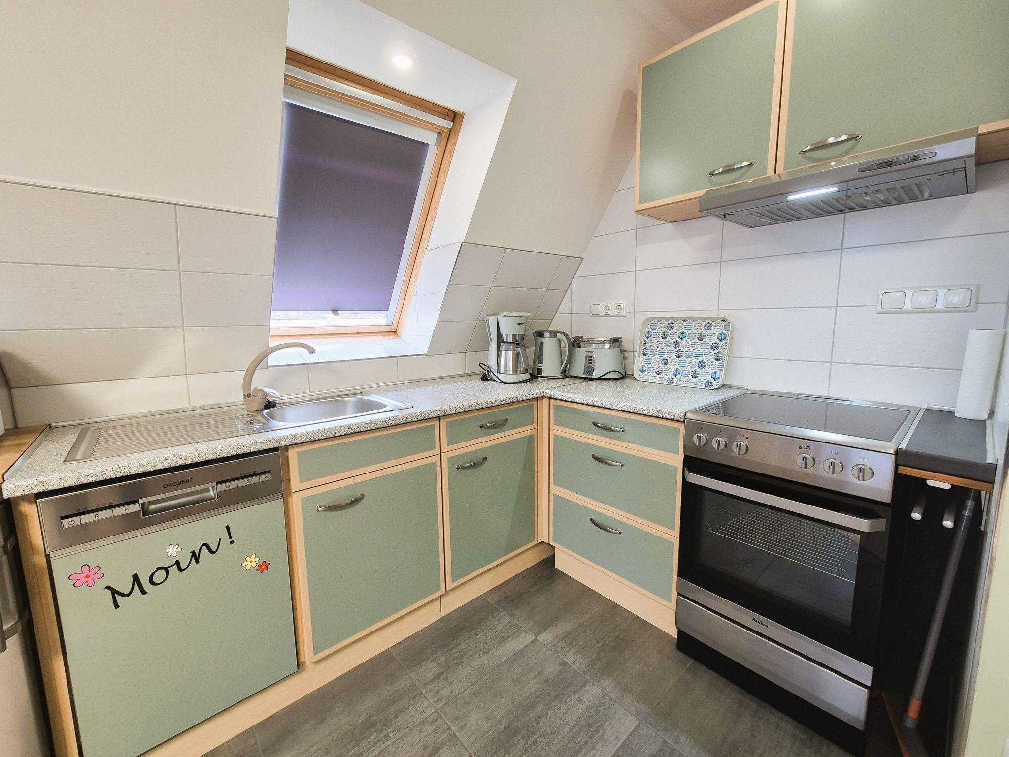 Unsere Ferienwohnung begrüßt Sie mit einem großzügigen Wohn-, Koch- und Essbereich, die keine Wünsche offenlässt. Entspannen Sie auf der gemütlichen Couchlandschaft, genießen Sie Ihre Lieblingssendungen auf dem Flachbild-TV und speisen Sie in der einladenden Essecke. Die moderne Küchenzeile ist mit allen wichtigen technischen Details ausgestattet, so dass es Ihnen an nichts fehlt. Im Schlafzimmer erwartet Sie ein komfortables Doppelbett, begleitet von Nachttischen und einem geräumigen Kleiderschrank. Von dort aus gelangen Sie direkt in das helle Tageslichtbad mit begehbarer Dusche ? der perfekte Ort, um den Tag entspannt zu beginnen!