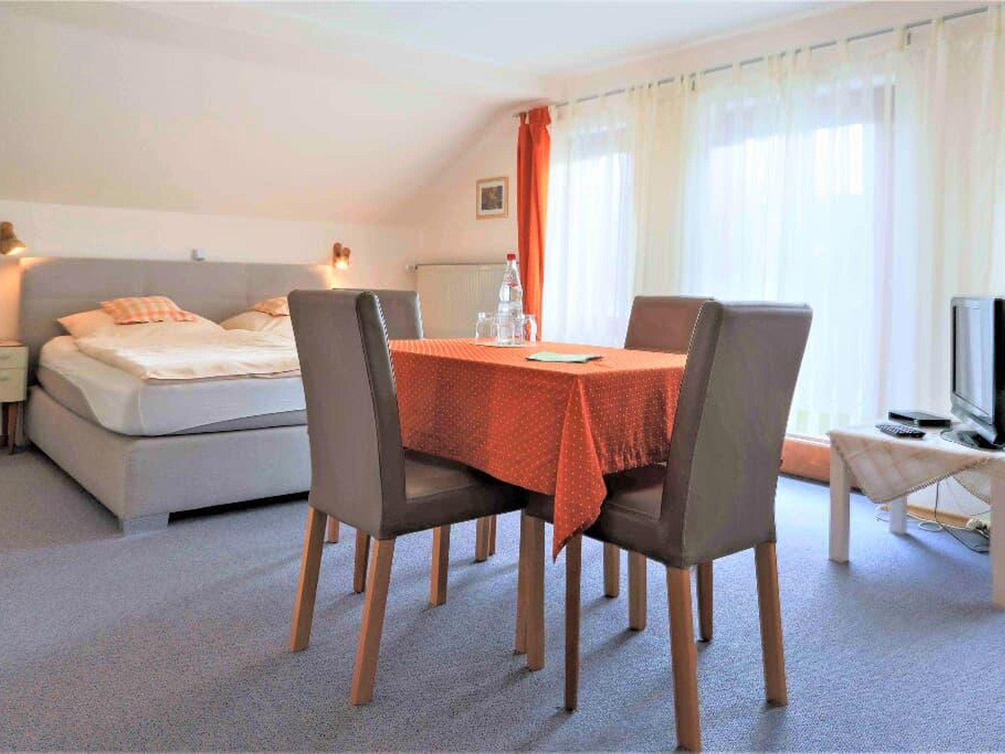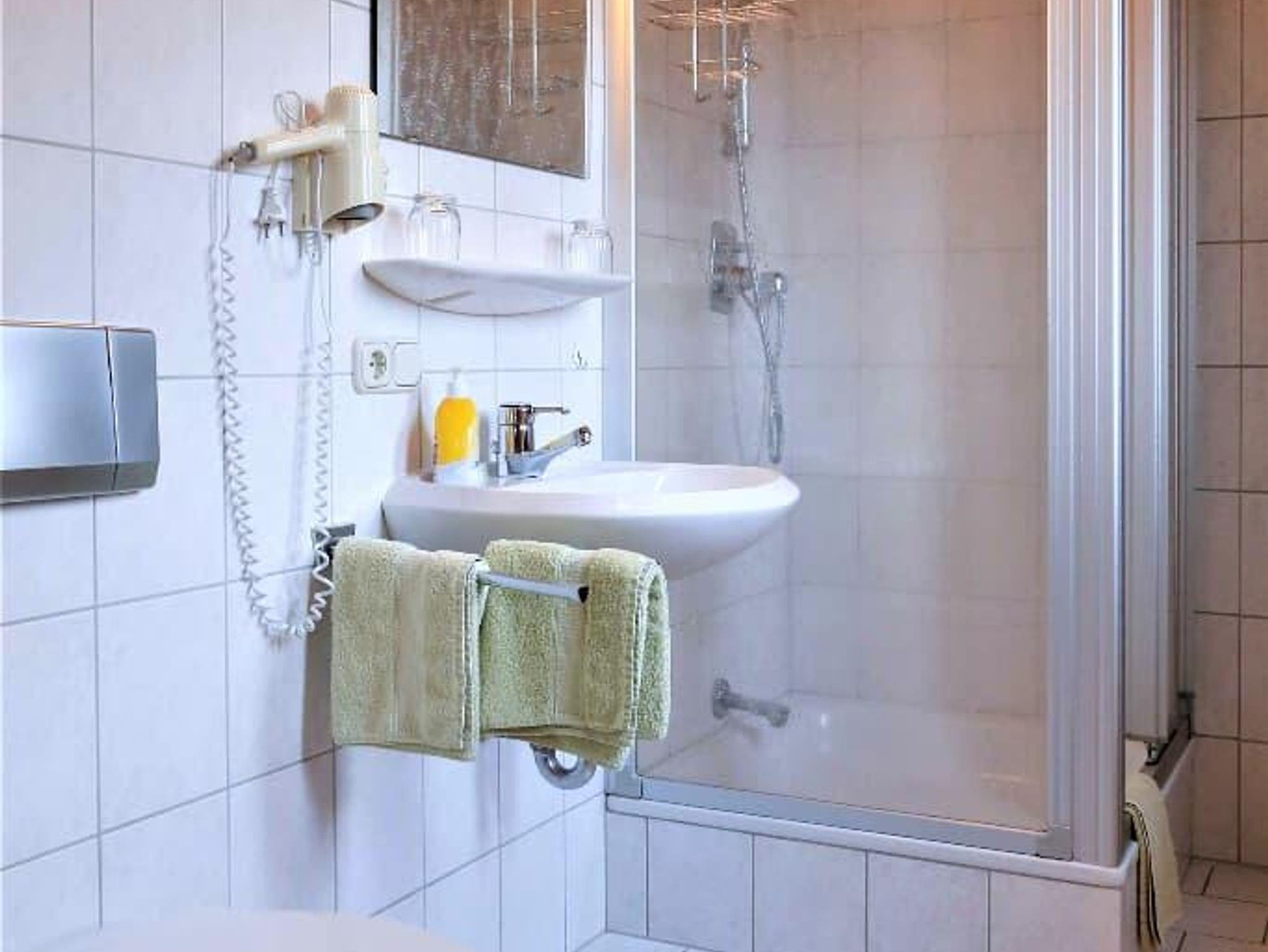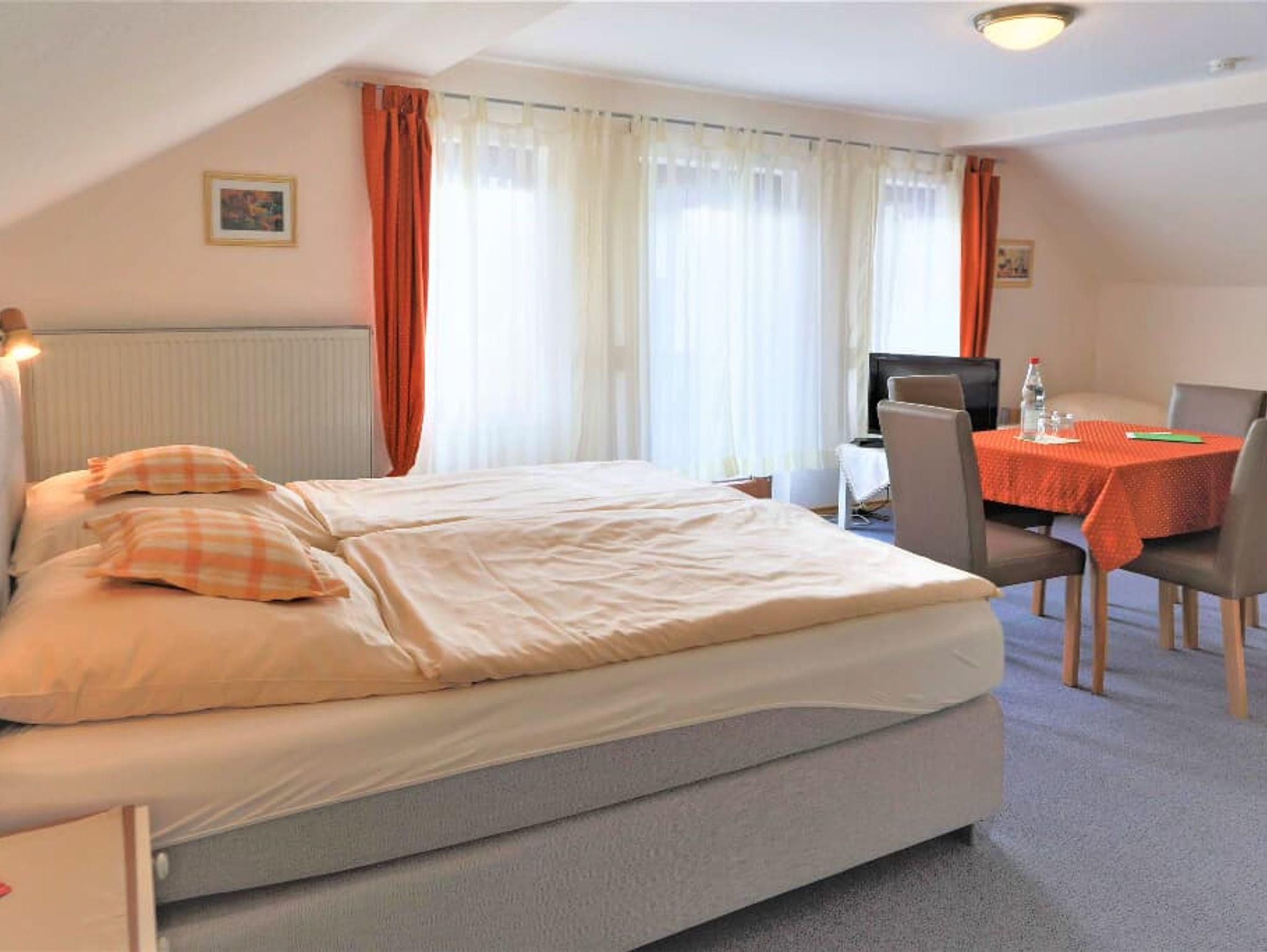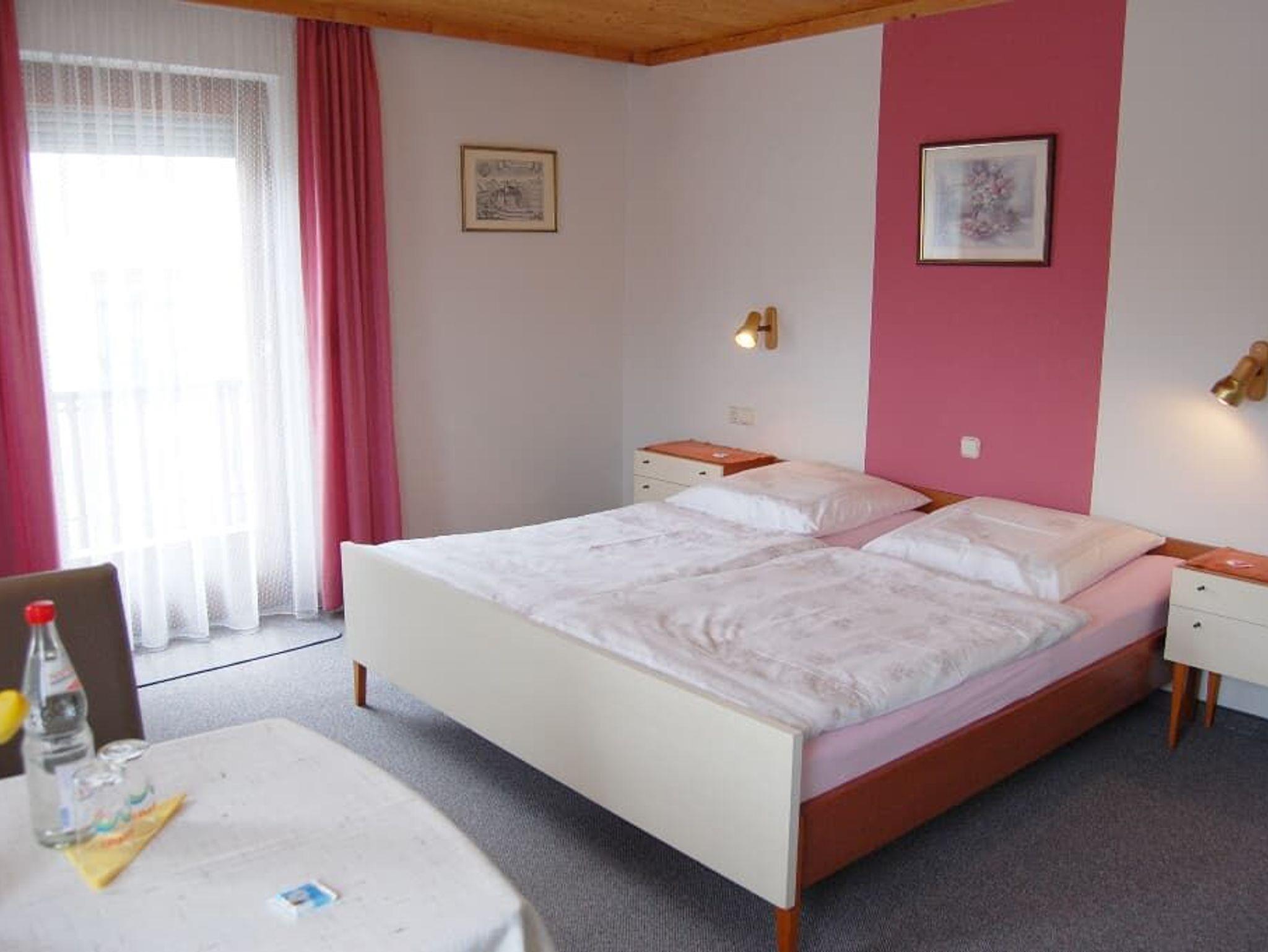 Unser Familienzimmer besteht aus zwei geräumigen Doppelzimmern mit Durchgangstür. Vor allem für Familien mit Kindern optimal geeignet. Ein Babybett stellen wir Ihnen auf Anfrage gerne kostenfrei zur Verfügung. Außerdem steht Ihnen ein großer Balkon mit Sitzgelegenheit zur Verfügung. Hier haben Sie eine herrliche Aussicht auf unseren Garten mit Pool. WLAN kostenfrei.