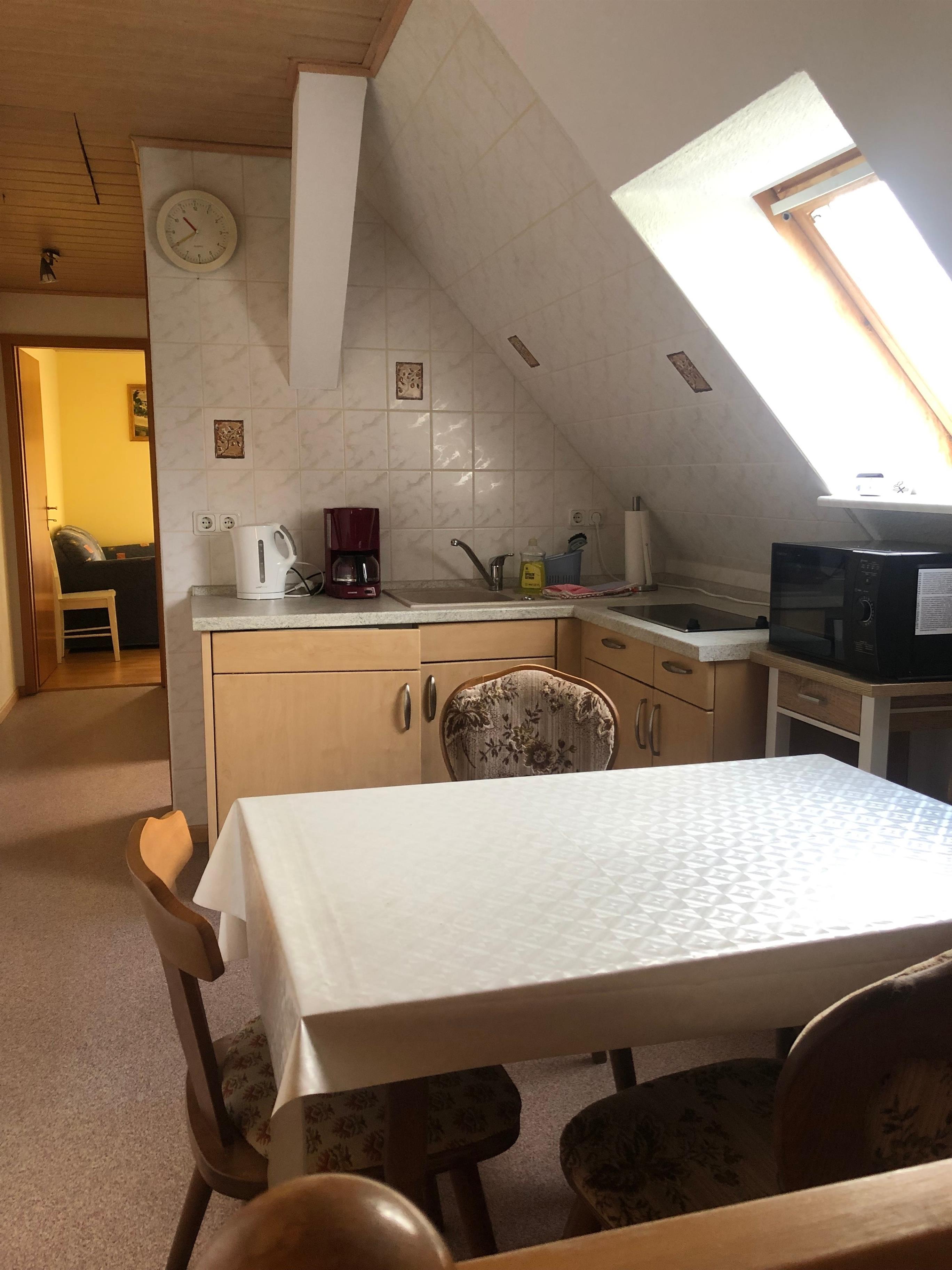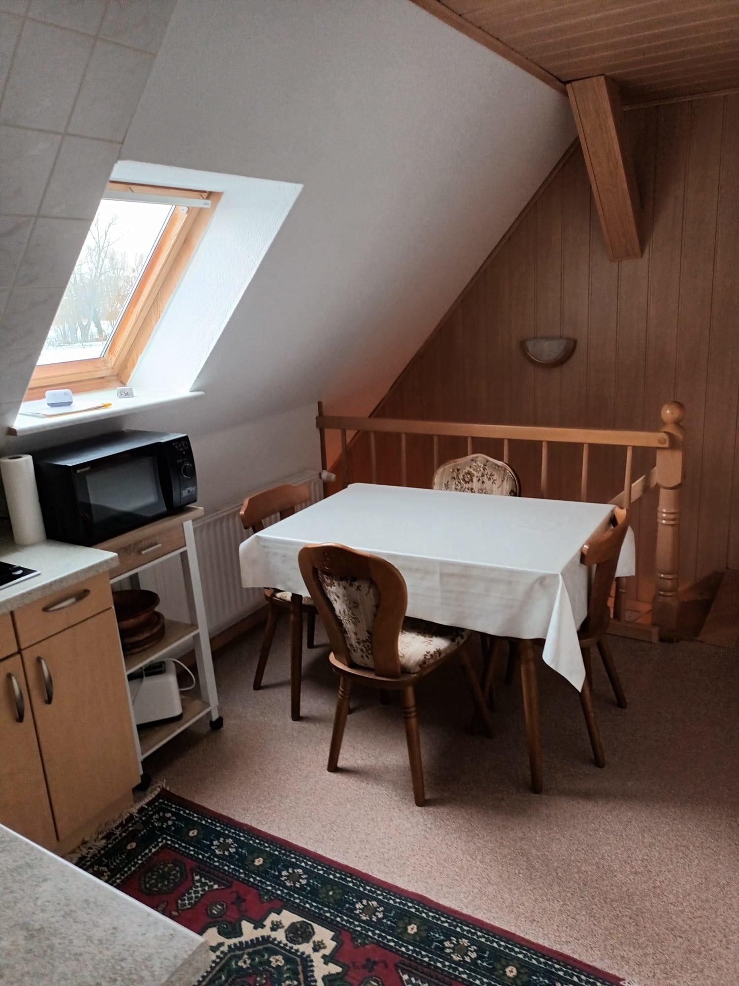 Die Dachgeschoßwohnung ist überwiegend für Radfahrer, Monteure, Dienstreisende oder Familienbesuche gedacht. Hier finden 3, auf der Schlafcouch im Wohnzimmer sogar 4 Personen einen Schlafplatz.