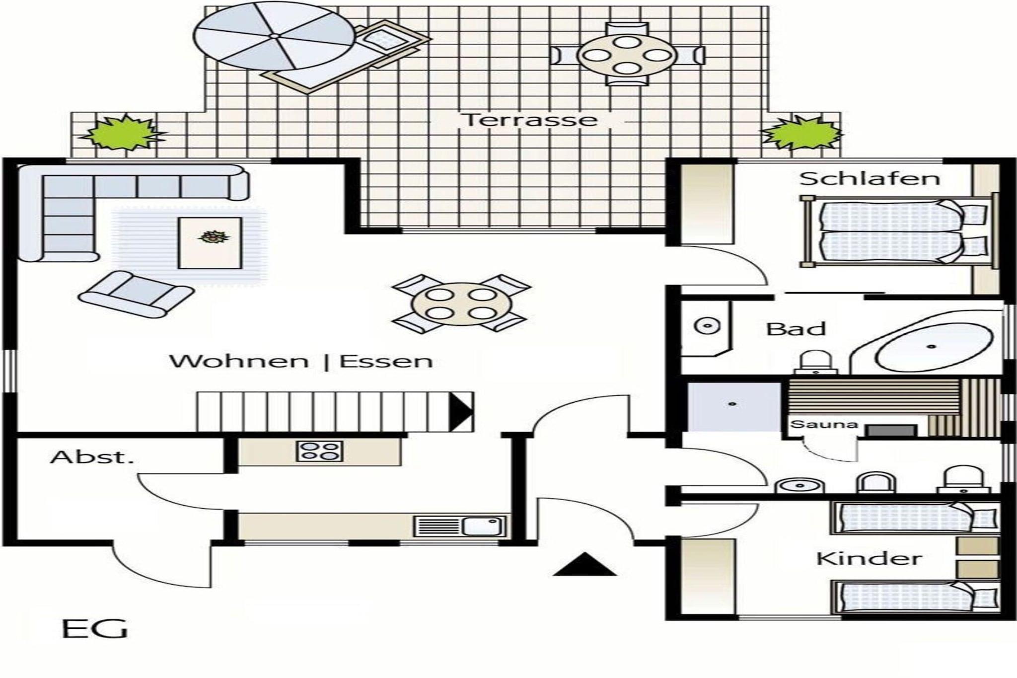 Stueetage: (Køkken(spisebord, kogeplade, elkedel, brødrister, kaffemaskine, ovn, opvaskemaskine , køleskab(+ fryser)), stue / spisestue(Fjernsyn(parabol), spisebord, pejs, sofahjørne), soveværelse(køjeseng eller 2 enkeltsenge), Soveværelse med badeværelse(fælles indgang)(dobbeltseng, Bubble bath, håndvask, toilet), badeværelse(bruser, sauna(privat), håndvask, toilet, føntørrer), badeværelse(badekar, håndvask, toilet, føntørrer), pulterkammer) Loft: (soveværelse(enkeltseng, enkeltseng), svalegang soveværelse(dobbeltseng, balkon)) tørretumbler(deles med andre gæster, betalt), vaskemaskine(deles med andre gæster, betalt), varme(elektrisk), terrasse, have, havemøbler, solstole, grill(trækul), parkering, barnestol, Ladestation til el-biler, baby crib(paid), Håndklæder/sengelinned (ekstra gebyr)