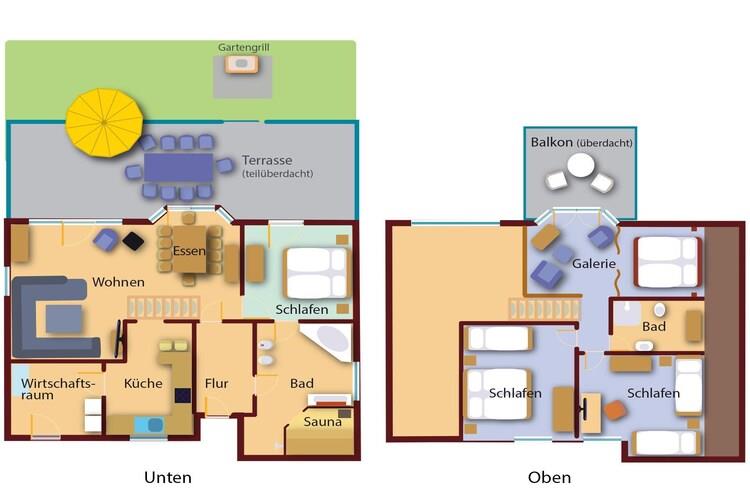 Stueetage: (Køkken(spisebord, kogeplade, elkedel, brødrister, kaffemaskine, ovn, mikrobølgeovn, opvaskemaskine , køleskab(+ fryser)), stue / spisestue(Fjernsyn(parabol), spisebord, pejs, sofahjørne), soveværelse(dobbeltseng), badeværelse(Bubble bath, bruser, sauna(privat), håndvask, toilet)) Loft: (soveværelse(dobbeltseng, Fjernsyn), soveværelse(enkeltseng, enkeltseng), badeværelse(bruser, håndvask, toilet), åbent rum(enkeltseng, halvandenmandsseng), balkon) tørretumbler, vaskemaskine, varme(elektrisk, gulvvarme), klimaanlæg, klimaanlæg, terrasse, have, havemøbler, solstole, grill(trækul), parkering, barnestol, trappegitter, Ladestation til el-biler, baby crib(paid), Håndklæder/sengelinned (ekstra gebyr)