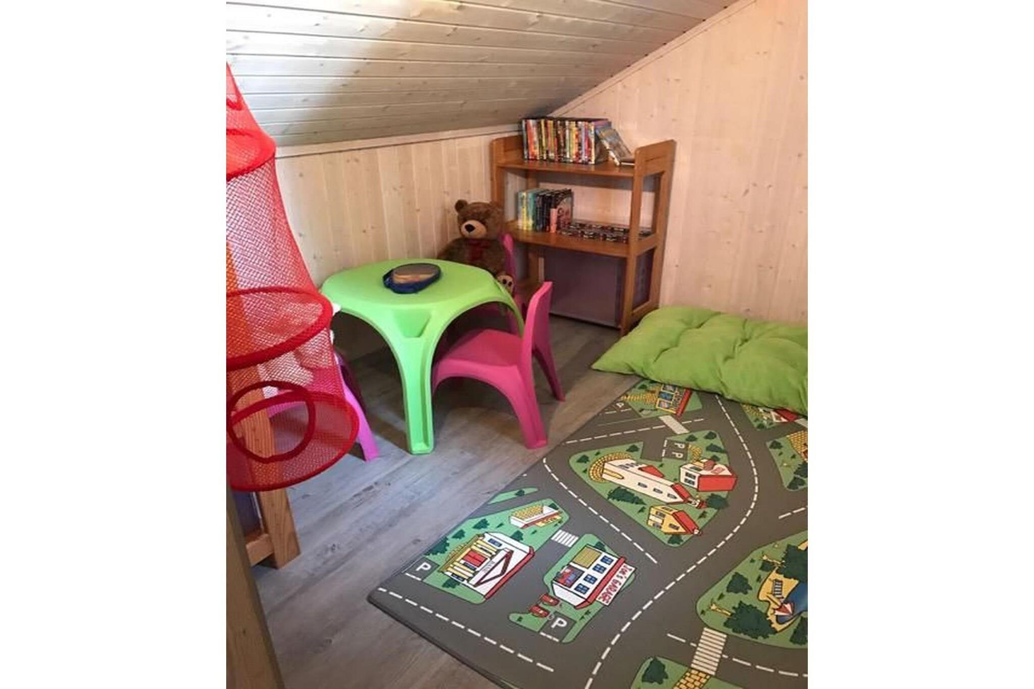 Stueetage: (Stue(Fjernsyn(parabol), pejs, sofahjørne), Køkken(spisebord, kogeplade, elkedel, brødrister, kaffemaskine, ovn, mikrobølgeovn, køleskab(+ fryser)), soveværelse(dobbeltseng), badeværelse(bruser, sauna(privat), håndvask, toilet), legeværelse, pulterkammer) På 1. etage: (soveværelse(enkeltseng, enkeltseng), åbent rum(halvandenmandsseng)) tørretumbler(deles med andre gæster, betalt), vaskemaskine, varme(elektrisk), terrasse(overdækket), have, havemøbler, solstole, parkering, swimmingpool(deles med andre gæster, betalt), barnestol, baby crib(paid), Håndklæder/sengelinned (ekstra gebyr)