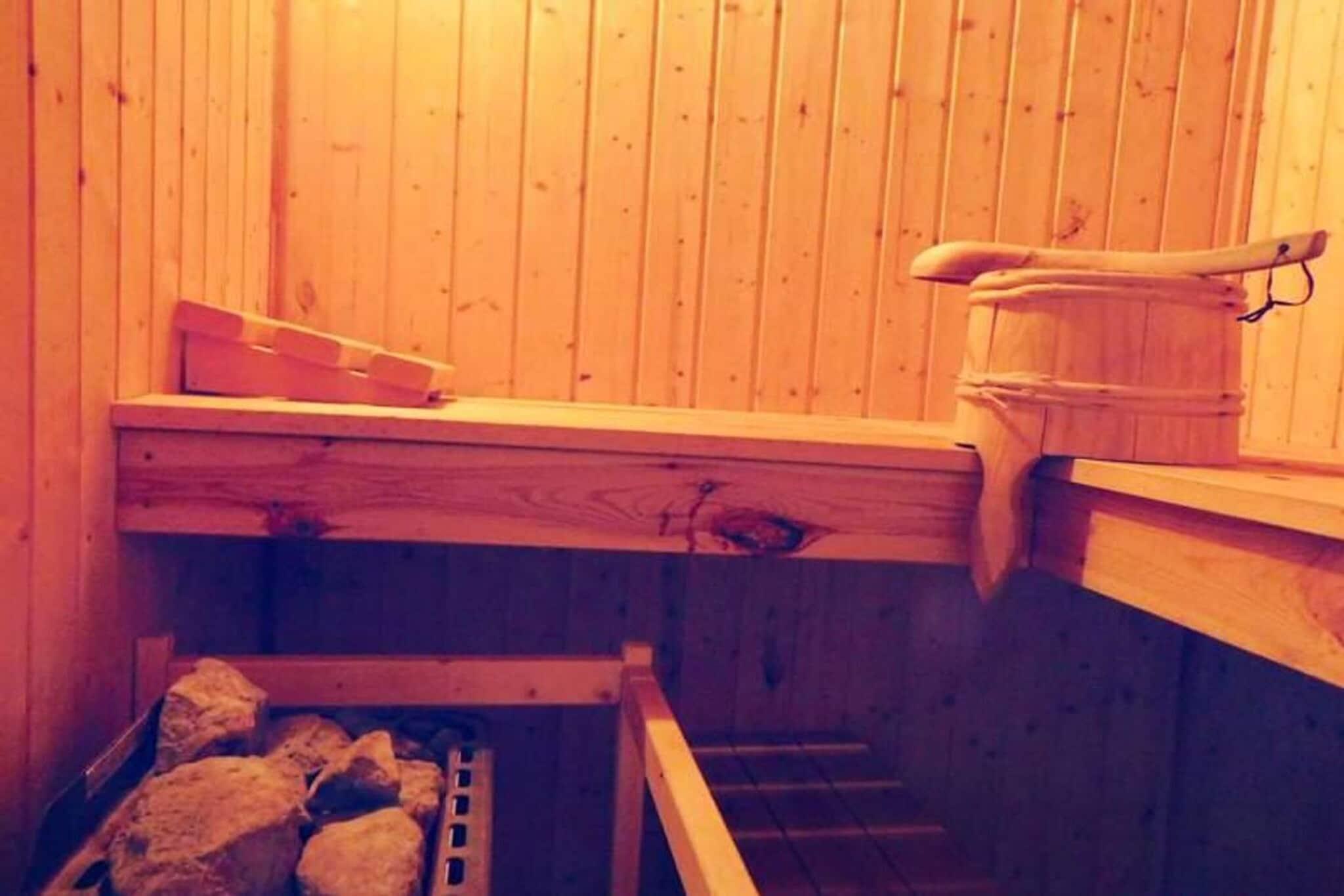 Stueetage: (Stue(Fjernsyn(parabol), pejs, sofahjørne), Køkken(spisebord, kogeplade, elkedel, brødrister, kaffemaskine, ovn, mikrobølgeovn, køleskab(+ fryser)), soveværelse(dobbeltseng), badeværelse(badekar, bruser, sauna(privat), håndvask, toilet), pulterkammer) På 1. etage: (soveværelse(enkeltseng, enkeltseng), svalegang soveværelse(halvandenmandsseng)) tørretumbler(deles med andre gæster, betalt), vaskemaskine(deles med andre gæster, betalt), varme(elektrisk), terrasse(overdækket), have, havemøbler, solstole, parkering, swimmingpool(deles med andre gæster, betalt), barnestol, baby crib(paid), Håndklæder/sengelinned (ekstra gebyr)