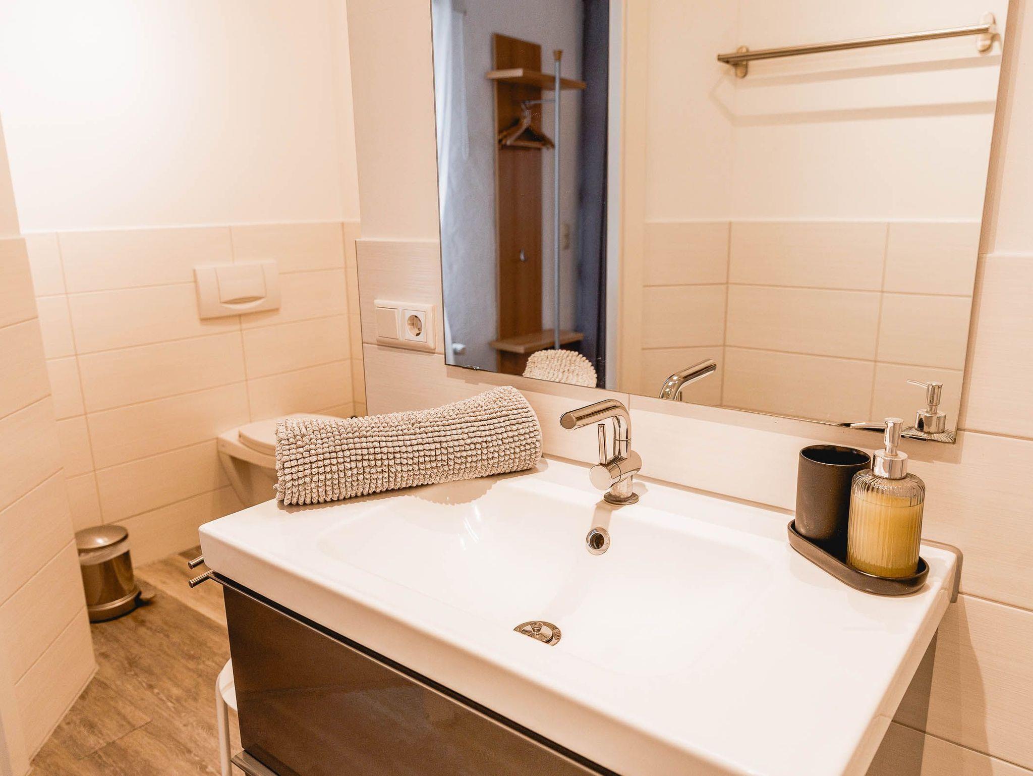 Die Wohnung Hamme befindet sich im EG unseres Haupthauses und bietet auf 80 qm Platz für bis zu vier Personen. Aufgeteilt ist die Wohnung in zwei Schlafzimmer (1 SZ mit Doppelbett, 1 SZ mit zwei Einzelbetten), einem großen Wohn/Essbereich mit komplett ausgestatteter Küchenzeile und Kaminofen, WC und Dusche mit Fußbodenheizung und einer Terrasse.
