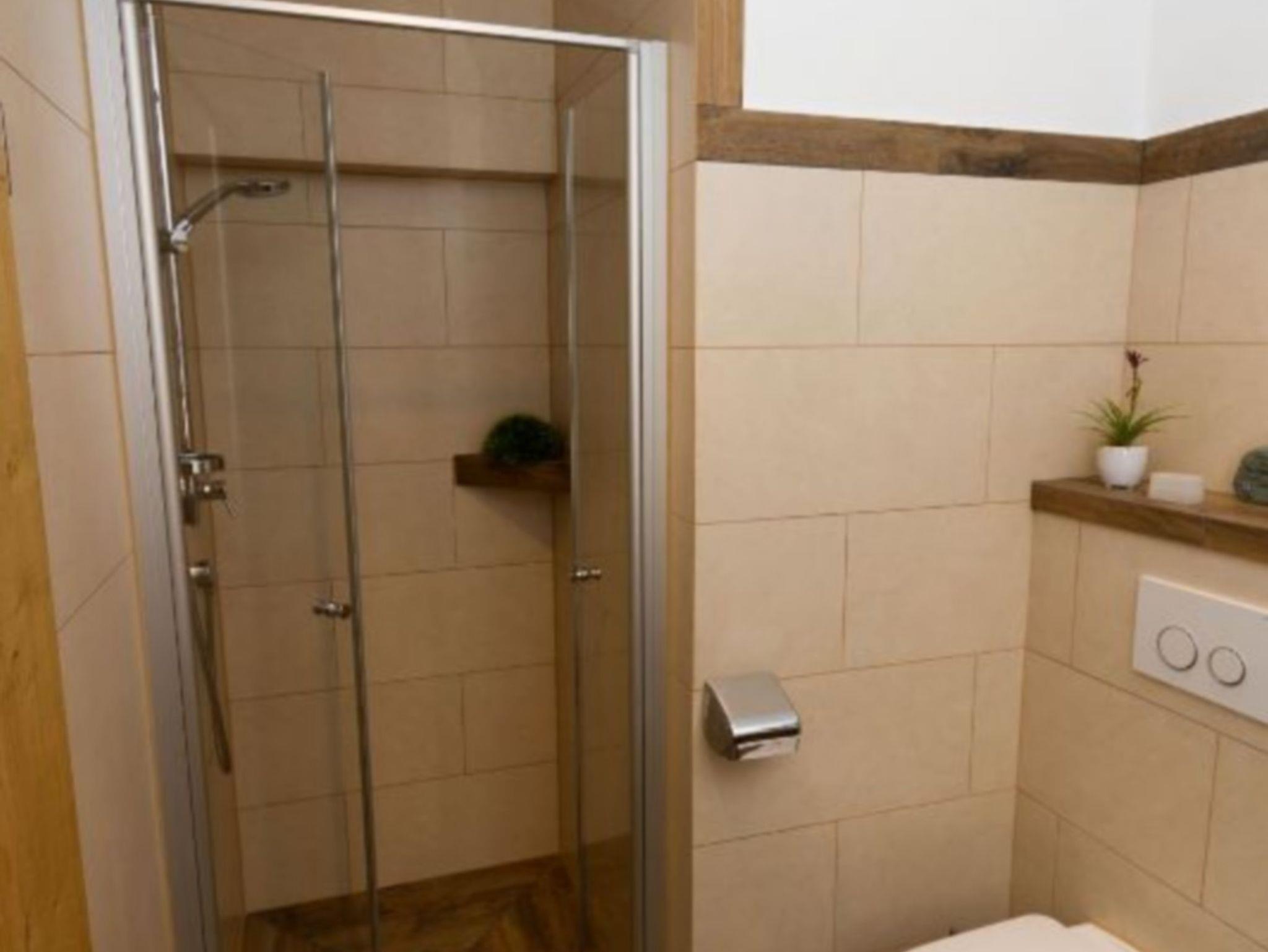 Die Wohnung bietet eine komplett ausgestattete Küche mit einer gemütlichen Essecke und einer Couch zum Ausruhen und Entspannen. Zudem verfügt sie über ein Schlafzimmer mit höheren Betten und Taschenfederkernmatratzen. Das Bad verfügt über eine Dusche mit ebenerdigen Einstieg, WC, Fußbodenheizung, eingebauten Radio, Kosmetikspiegel und einen Föhn. Vom Ostbalkon aus haben Sie eine wunderbare Aussicht auf die Berge der Umgebung.
