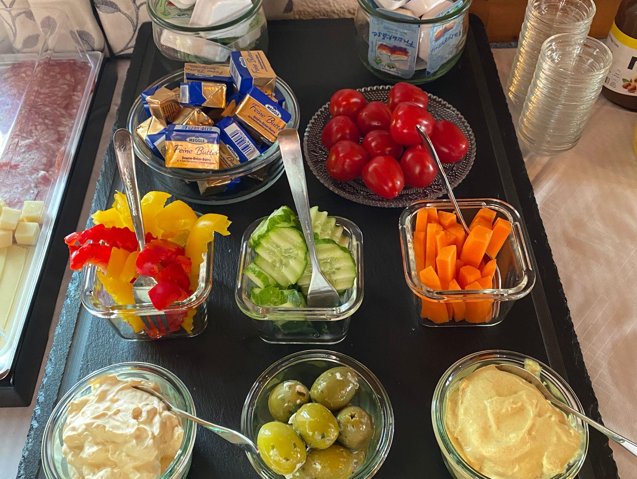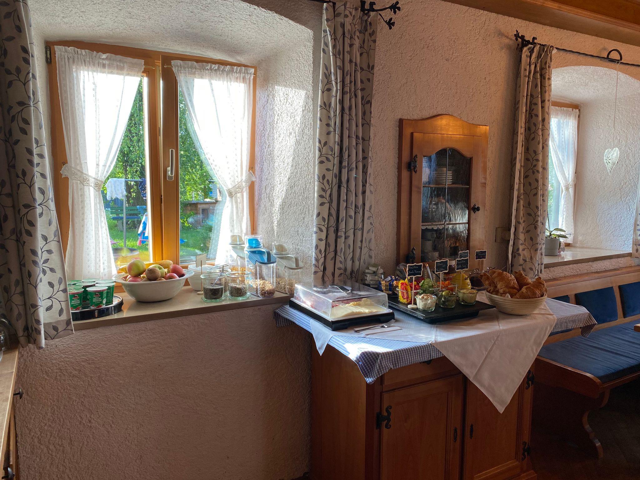 Im Erdgeschoss befindet sich der Frühstücksraum in dem Ihnen das Frühstück als Buffet serviert wird. Wir legen viel Wert auf regional Produkte und versuchen wenn möglich alles bei uns im Ort zu beziehen.