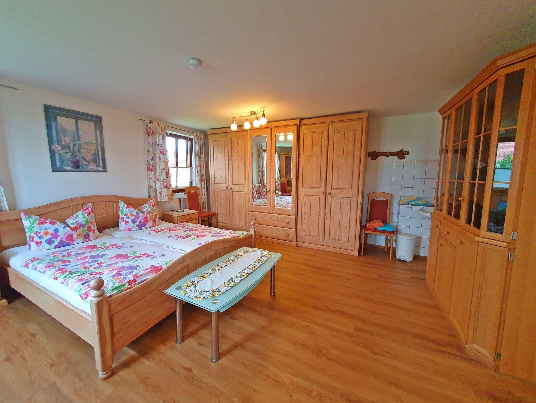 Gemütlich eingerichtetes Doppelzimmer ca. 22 qm mit Doppelbett und Ausziehcouch, DU/WC/Bad auf der Etage.