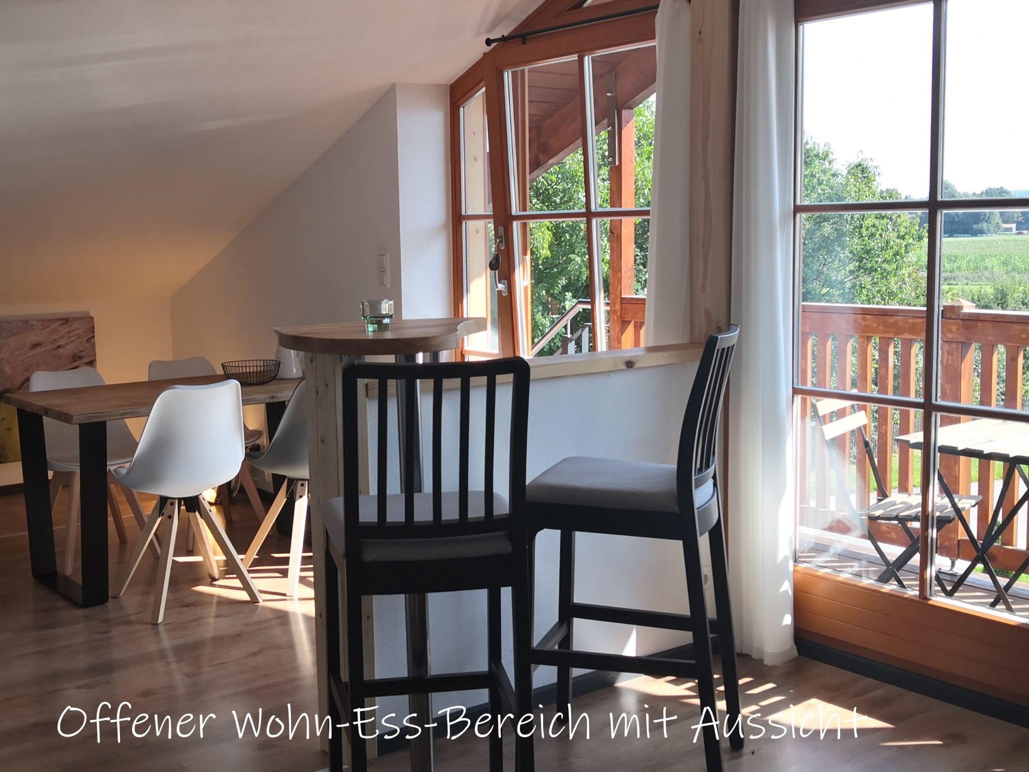 Genießen Sie Ihren Wander-, Bade- oder Ski-Urlaub in unserer neuen, im Januar 2022 fertig gestellten, gemütlichen Ferienwohnung im Chiemgau. Von den zwei Balkonen und großen Fenstern haben Sie eine herrliche Aussicht auf das Panorama der Chiemgauer Alpen.Die helle Wohnung die Sie über eine elegante Außentreppe erreichen, umfasst das gesamte Dachgeschoß und wurde von uns liebevoll und behaglich eingerichtet. Sie bietet in zwei getrennten Schlafzimmern Platz für 4 Personen. Im Durchgangszimmer mit Garderobe können auf Wunsch ein zusätzlicher Schlafcouchplatz bereitgestellt werden. Bettwäsche, Hand- und Geschirrtücher, PKW-Stellplatz, Fahrradhütte und W-LAN sind inbegriffen. Unsere Küche ist sehr gut ausgestattet mit Kaffeemaschine, Kühlschrank, Kochfeld, Backofen und Geschirrspülmaschine und offen zum Ess- und Wohnbereich.