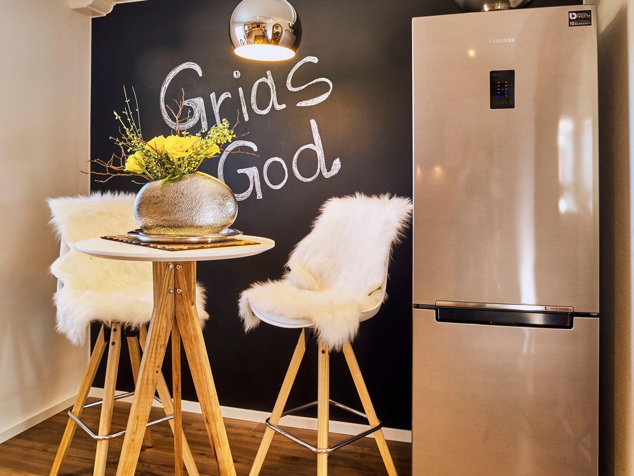 Küche mit Essbar, Esszimmer, das moderne Wohnzimmer mit Kachelofen lassen Ihren Aufenthalt richtig gemütlich werden.