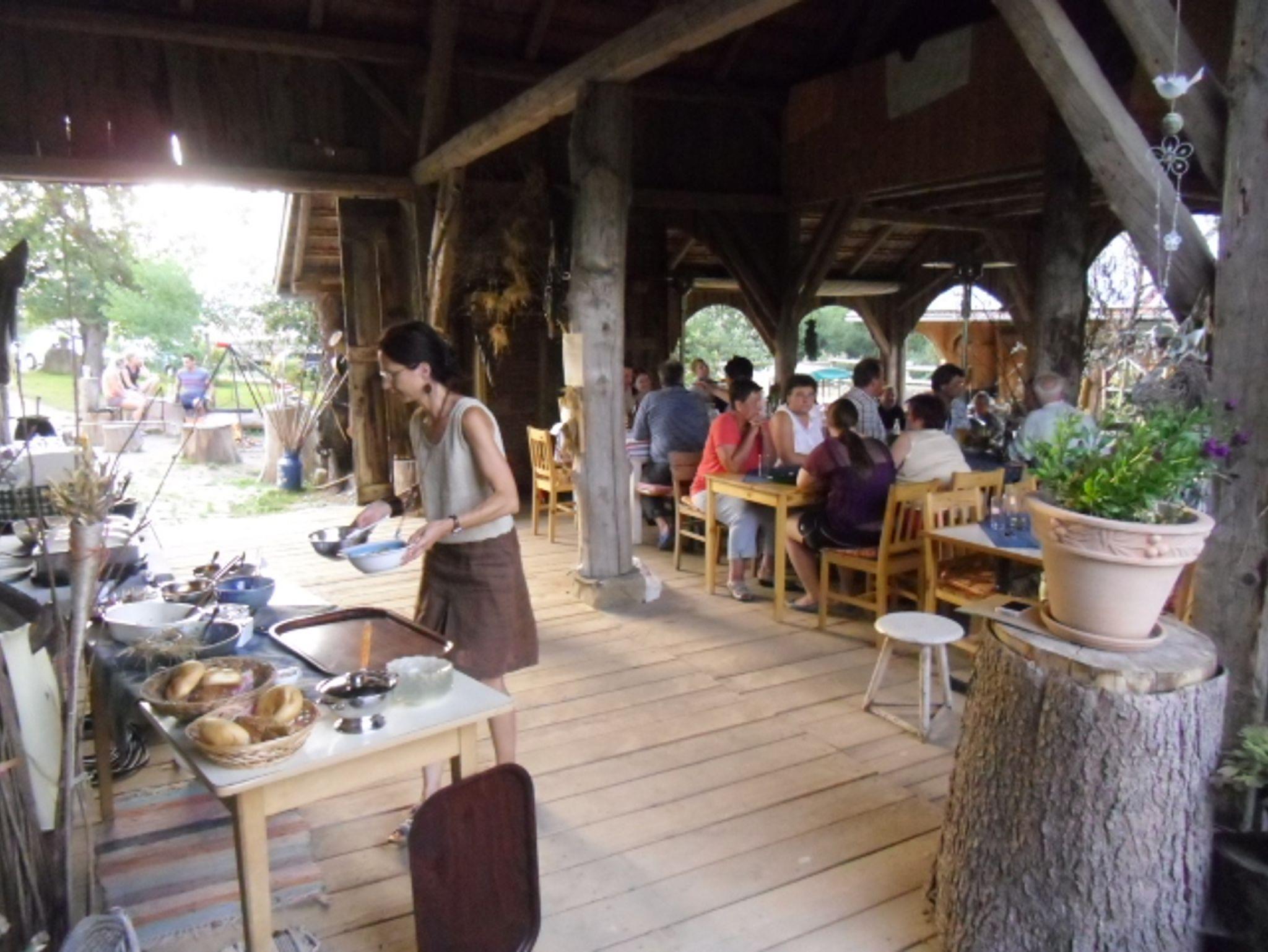 Auf dem Hof ist ein Lagerfeuergrillplatz, ein Reiterstüberl, ein kleiner Biergarten. Wir backen fast jeden Samstag Bauernbrot im Holzbackofen, manchmal gibt's Sengzeltenessen (Bauernpizza aus dem Holzbackofen) oder Grillabende. Im Dorf gibt's auch zwei Wirtshäuser, falls Sie mal nicht selber kochen möchten. Bäckerei, Kramerladen, Metzgerei, alles im Dorf ca. 400 m. Handtücher und Bettwäsche inklusive. Auf TV und WLAN in den Hüttenappartements verzichten wir bewußt. Ihr Urlaub bei uns soll sie in natürlicher Umgebung die Kraft der Natur bewußt wahrnehmen und wirken lassen. Waldbaden als Geschenk unserer Natur.