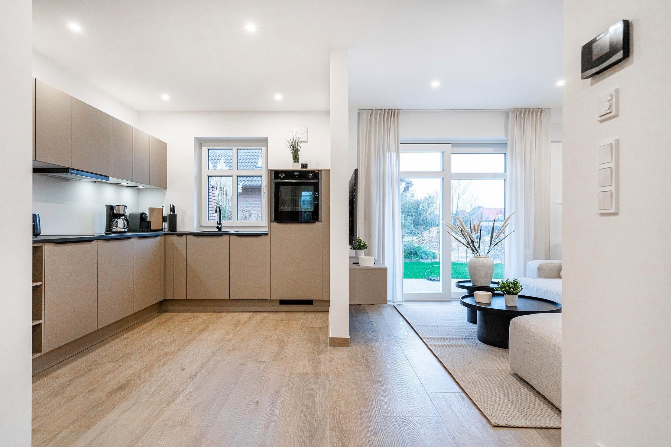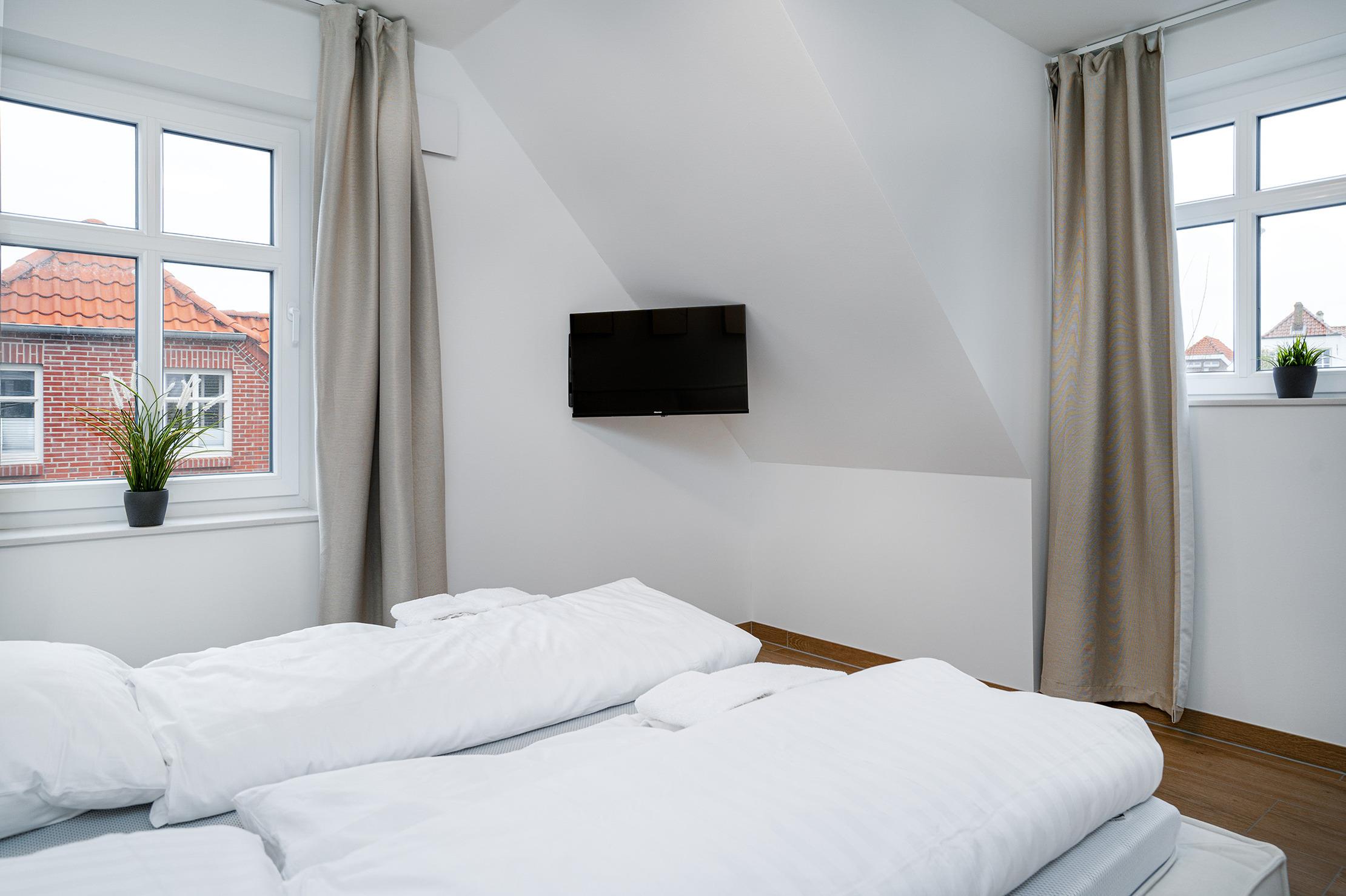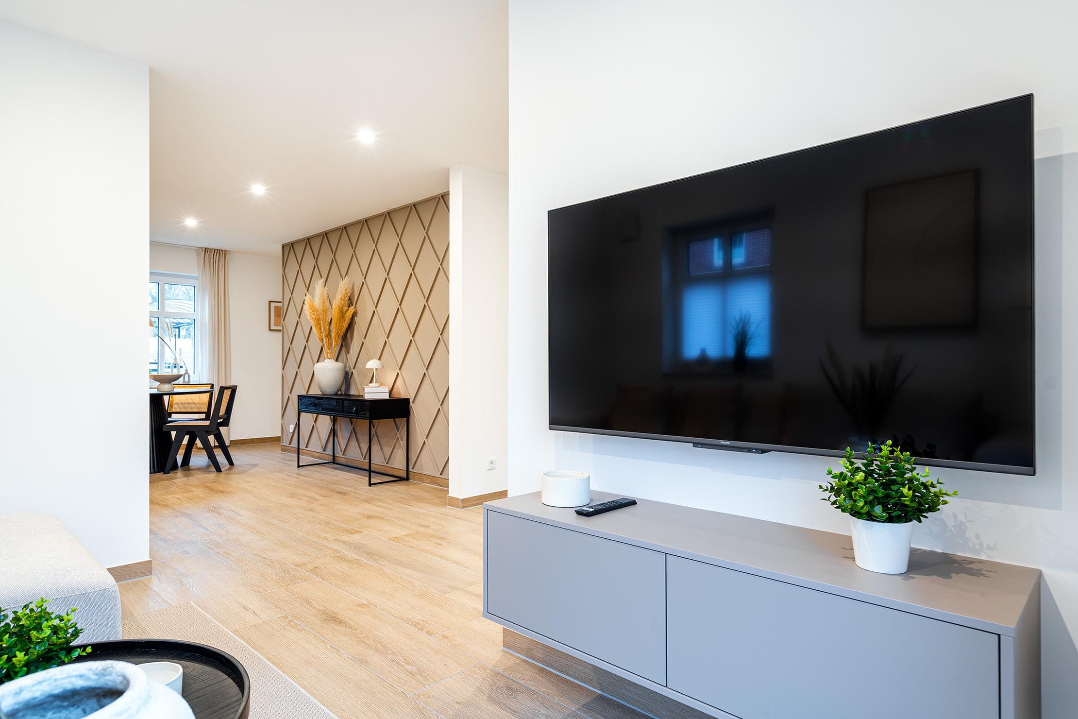 Unser neues Ferienhaus "HafenKISTE 2" liegt ideal in einer ruhigen Sackgasse im Zentrum Greetsiels. Schon beim Betreten des Hauses kann man sich nur wohlfühlen, denn die Einrichtung des Haus in warmen Erdtönen wurde äußerst hochwertig und mit viel Liebe zum Detail ausgewählt. Im Erdgeschoss finden Sie einen einladenden Wohnbereich mit einer bequemen Sofalandschaft und Zugang zum Garten, eine große Einbauküche mit hochwertigen Geräten, ein äußerst geschmackvoller Essbereich sowie einen Abstellraum. Das helle Tageslichtbad mit ebenerdiger Dusche und Doppelwaschbecken rundet die Exklusivität ab. Im Obergeschoss befindet sich neben den beiden geräumigen Schlafzimmern ein weiteres Tageslichtbad mit Dusche, was das Haus sehr komfortabel für den gemeinsamen Urlaub mit Freunden oder der Familie macht. Besonders hervorzuheben ist die seltene Kombination, die in einer zentralen Lage kaum zu finden ist: mitten im Herzen Greetsiels gelegen, verfügt das Haus nicht nur über eine ruhige Atmosphäre, sondern auch über einen eigenen Garten, eine Terrasse und sogar zwei private Parkplätze.