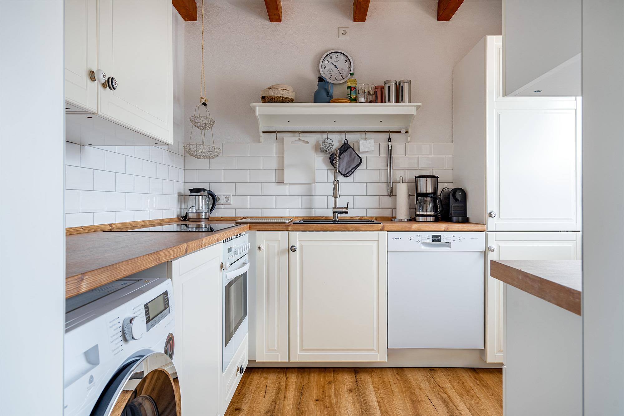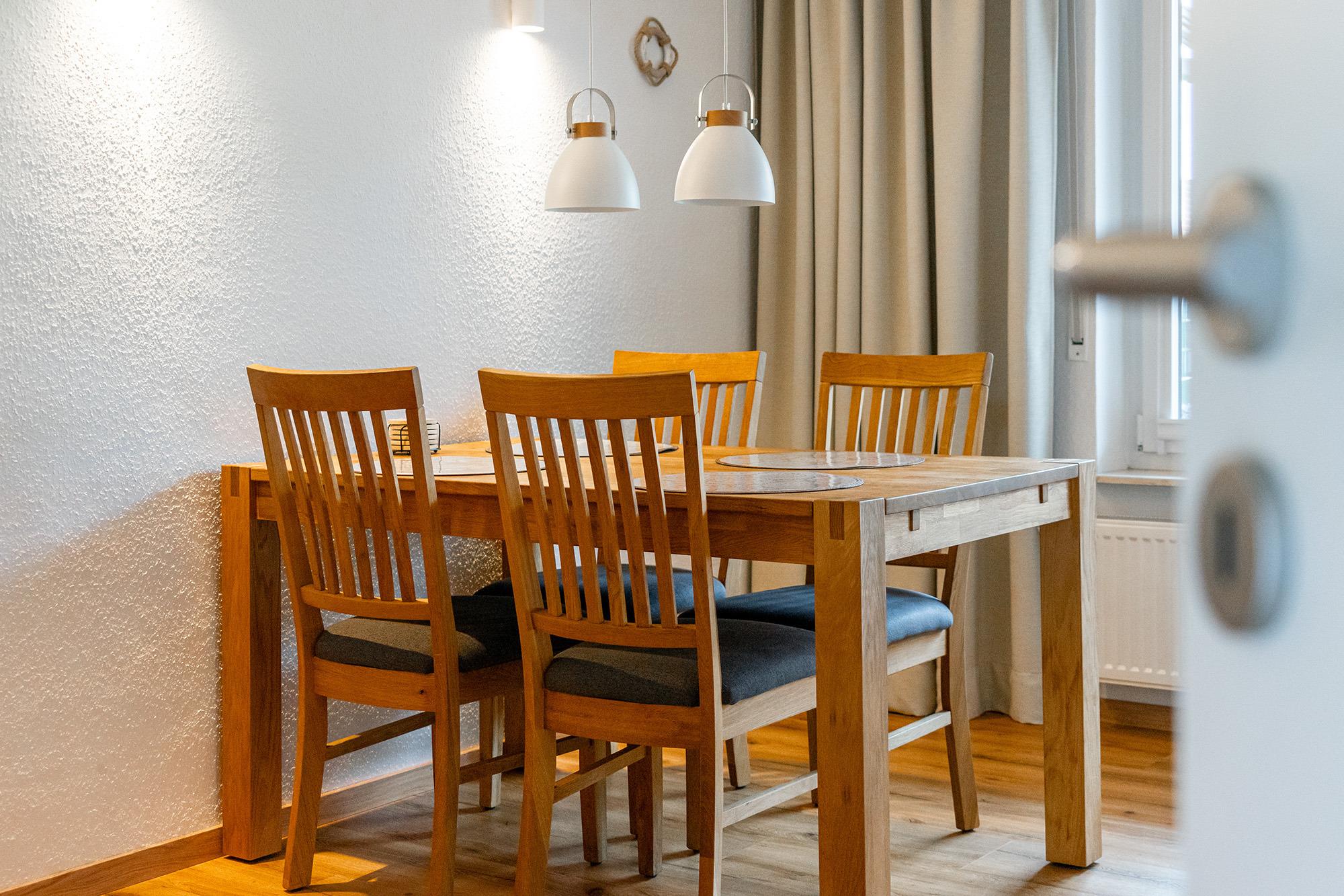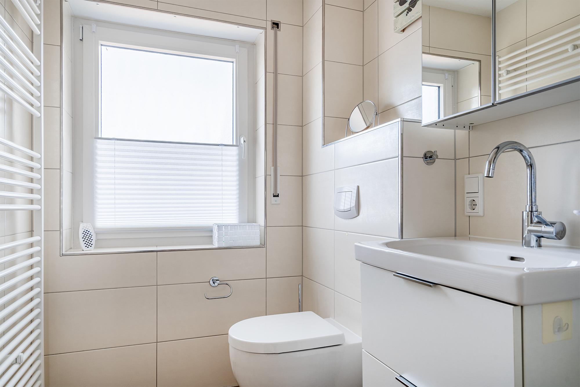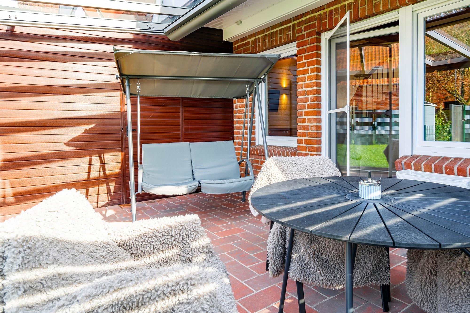 Viel draußen sitzen und die frische Nordseeluft genießen - das ist in unserem Ferienhaus "Ruhehafen" sogar trotz ostfriesischem "Schietwetter" gut möglich. Denn dieses kürzlich umfassend renovierte Ferienhaus bietet einen Garten, eine voll überdachte und mit Glastüren verschließbare Terrasse sowie einen großen Sonnenbalkon. Auf etwa 70qm finden Sie im Erdgeschoss einen hellen Wohn-Ess-Bereich, sowie eine großzügige separate Küche. Die Einrichtung im Landhausstil sowie die Deckenbalken aus Holz strahlen eine gemütliche und warme Atmosphäre aus. Neben einem Abstellraum befindet sich im Erdgeschoss ebenfalls das Tageslichtbad mit einer ebenerdigen Dusche. Die großzügigen Schlafzimmer mit bequemen Boxspringbetten und großen Einbauschränken finden Sie im Obergeschoss, ebenso ein kleines Gäste-WC. Das Haus verfügt außerdem über zwei Parkplätze, was sich für den gemeinsamen Urlaub mit Freunden anbietet. Für Fahrräder steht im Garten ein Abstellraum zur Verfügung.