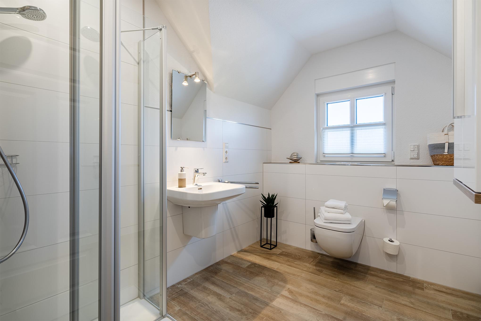 „Vista 1“, unser erst kürzlich erbautes Ferienhaus, liegt in einer ruhigen Neubaugegend von Greetsiel. Das geräumige Haus verfügt auf zwei Etagen über einen offenen und großzügigen Wohn-Ess-Bereich, zwei Schlafzimmer mit bequemen Boxspringbetten, ein Schlafzimmer mit zwei Einzelbetten, zwei Bäder und einen Abstellraum. Bodengleiche Duschen, Fußbodenheizung, eine Waschmaschine und die voll ausgestattete Küche machen das Haus zu einem komfortablen Feriendomizil. Auch Hunde sind hier herzlich Willkommen und werden den voll eingezäunten Garten sicher zu schätzen wissen, während Ihre Herrchen die geräumige Terrasse mit elektrischer Markise genießen. Zum Haus gehört neben dem PKW-Stellplatz auch ein Abstellraum für Ihre Fahrräder.