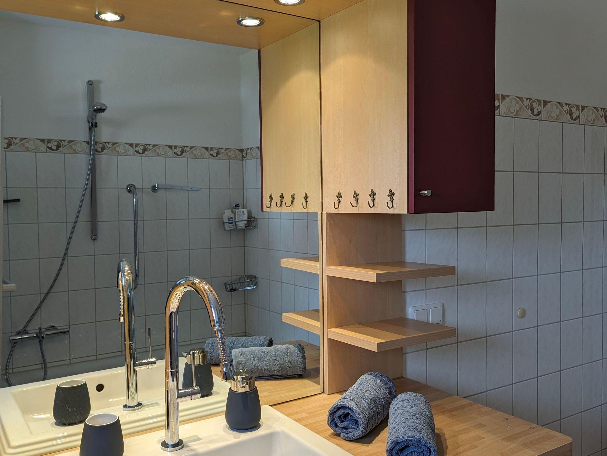 • Staubsauger, Wäscheständer, Strandmuschel, Kinderhochstuhl, Balkonmöbel, Zusatzdecken und Kissen, Safe (Schlüssel am ausgehändigten -bund) stehen im Einbauschrank zur Verfügung